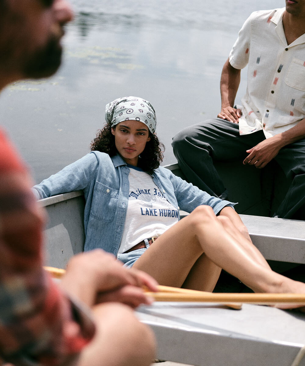 Short-Sleeve Sunwashed Henley - Cream Flint Stripe