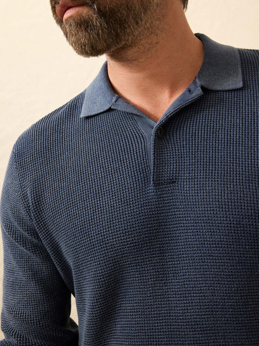 Long-Sleeve Sunwashed Sweater Polo - Blue Nights