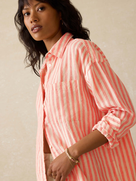 Laguna Linen Relaxed Shirt - Peach Lucy Stripe