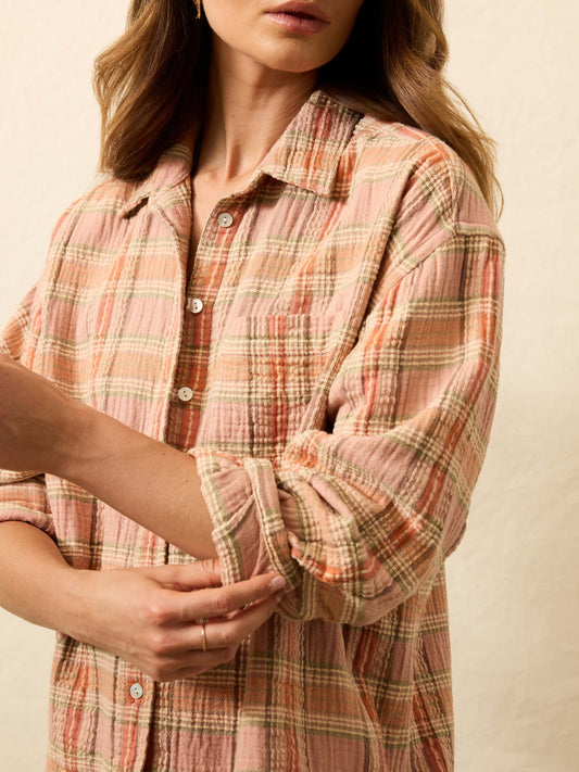 Dune Cotton Gauze Relaxed Shirt - Tinted Rose Water Plaid