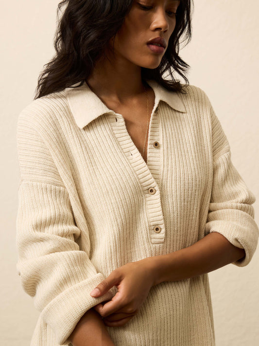 Miramar Linen Relaxed Polo Sweater - Summer Sand