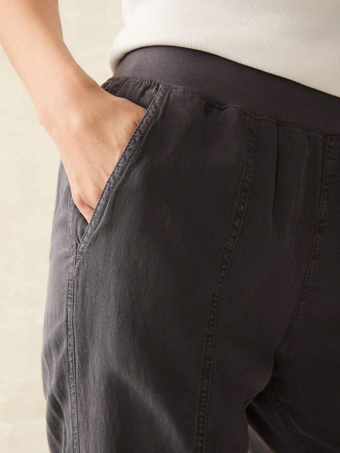 We took your tried-and-true Faherty favorite – the Arlie Pant, and finished it with front seams and a tapered leg for a more polished, streamlined look. Featuring the same soft, just-stretchy-enough blend of linen, cotton, and other fibers, it's then specially dyed and washed for a vintage-inspired, lived-in vibe. The pull-on waistband gives you all day comfort but it's elevated enough to wear to work or out to dinner.