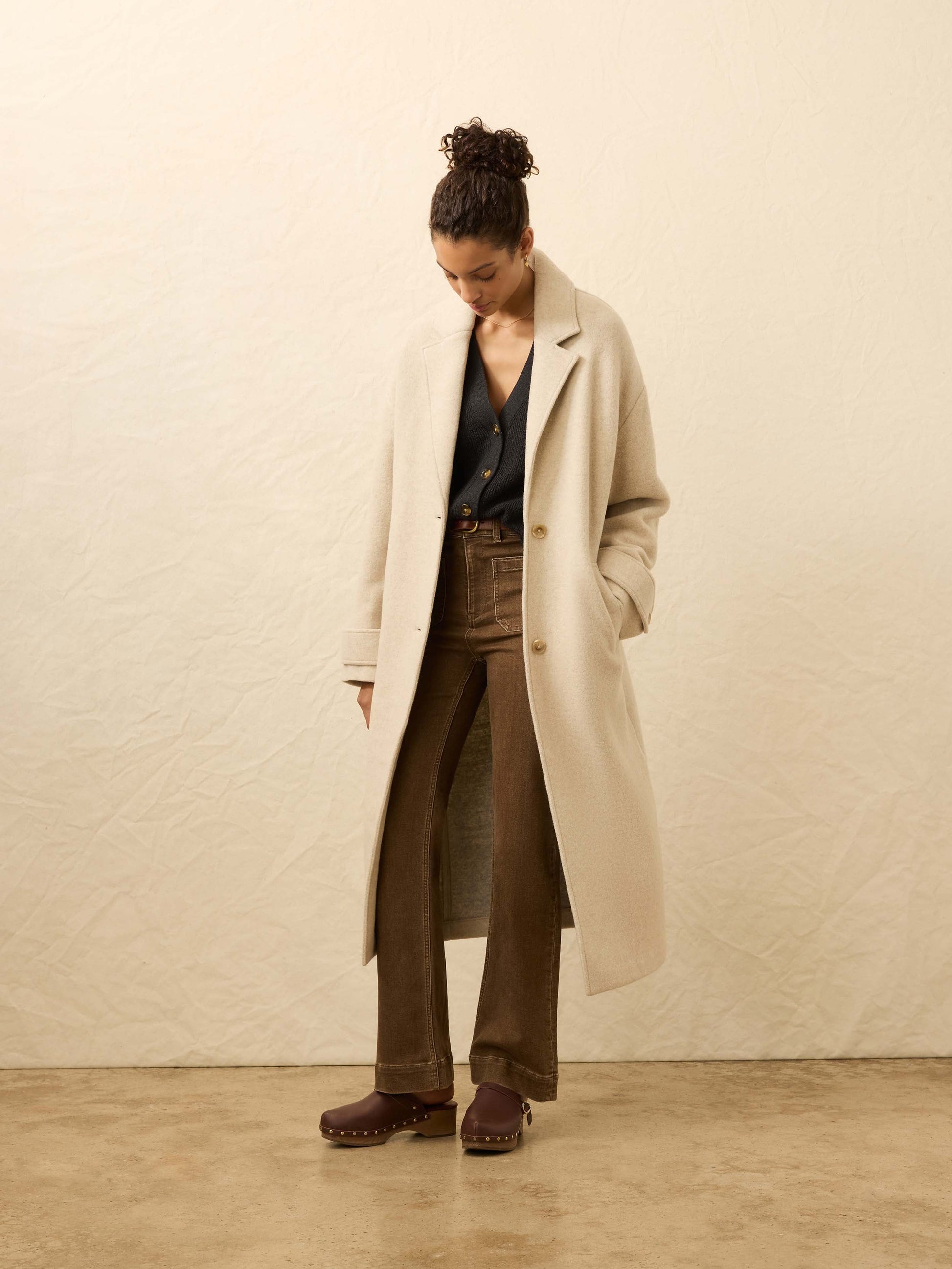 This elegant coat exudes timeless style done the Faherty way. Our double face wool blend fabric has a smooth finish that compliments the coat's clean lines. With an open front and relaxed shape, it's easy to layer over your favorite sweaters of the season.