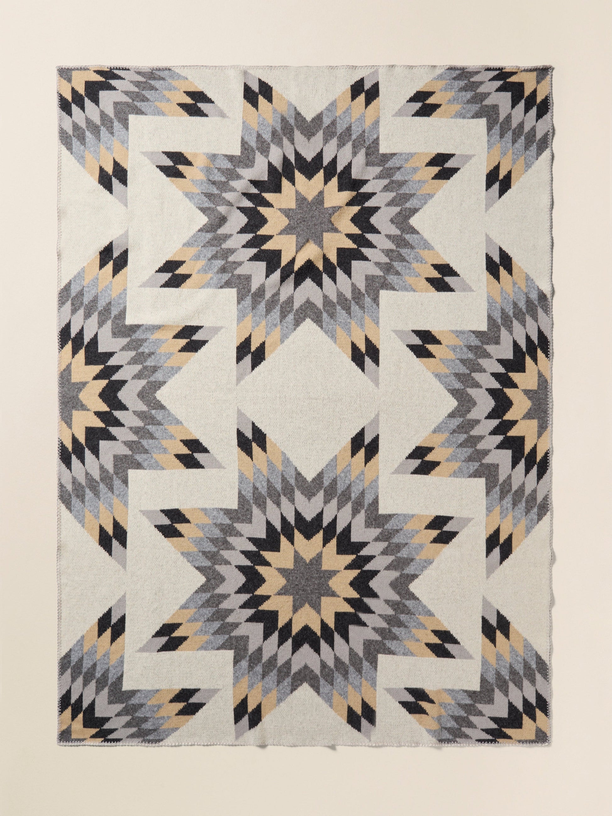 B. Yellowtail Star Patchwork Blanket - Grey Star Patchwork