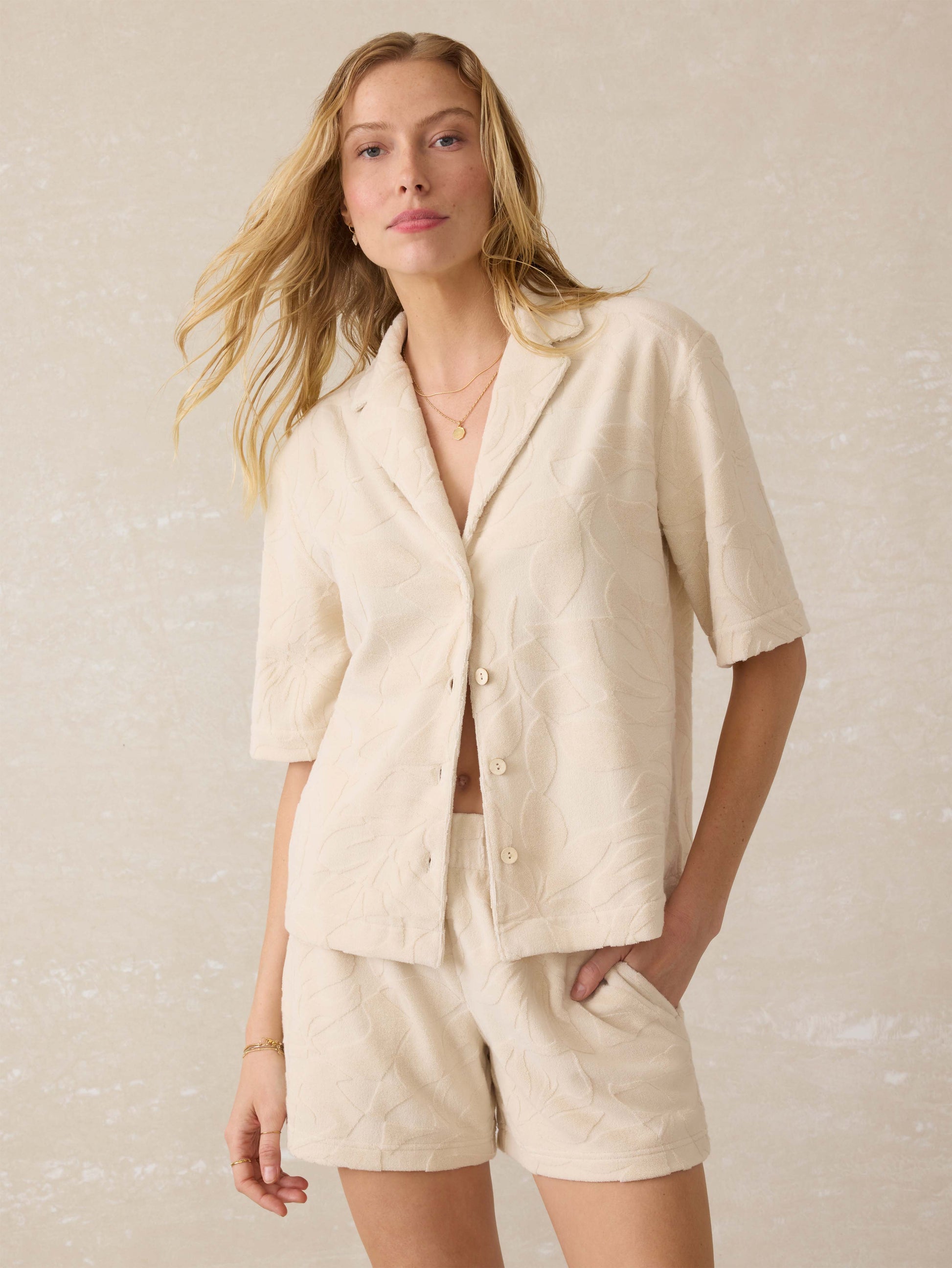 Cabana Towel Terry Camp Shirt - Marble Poolside Foliage