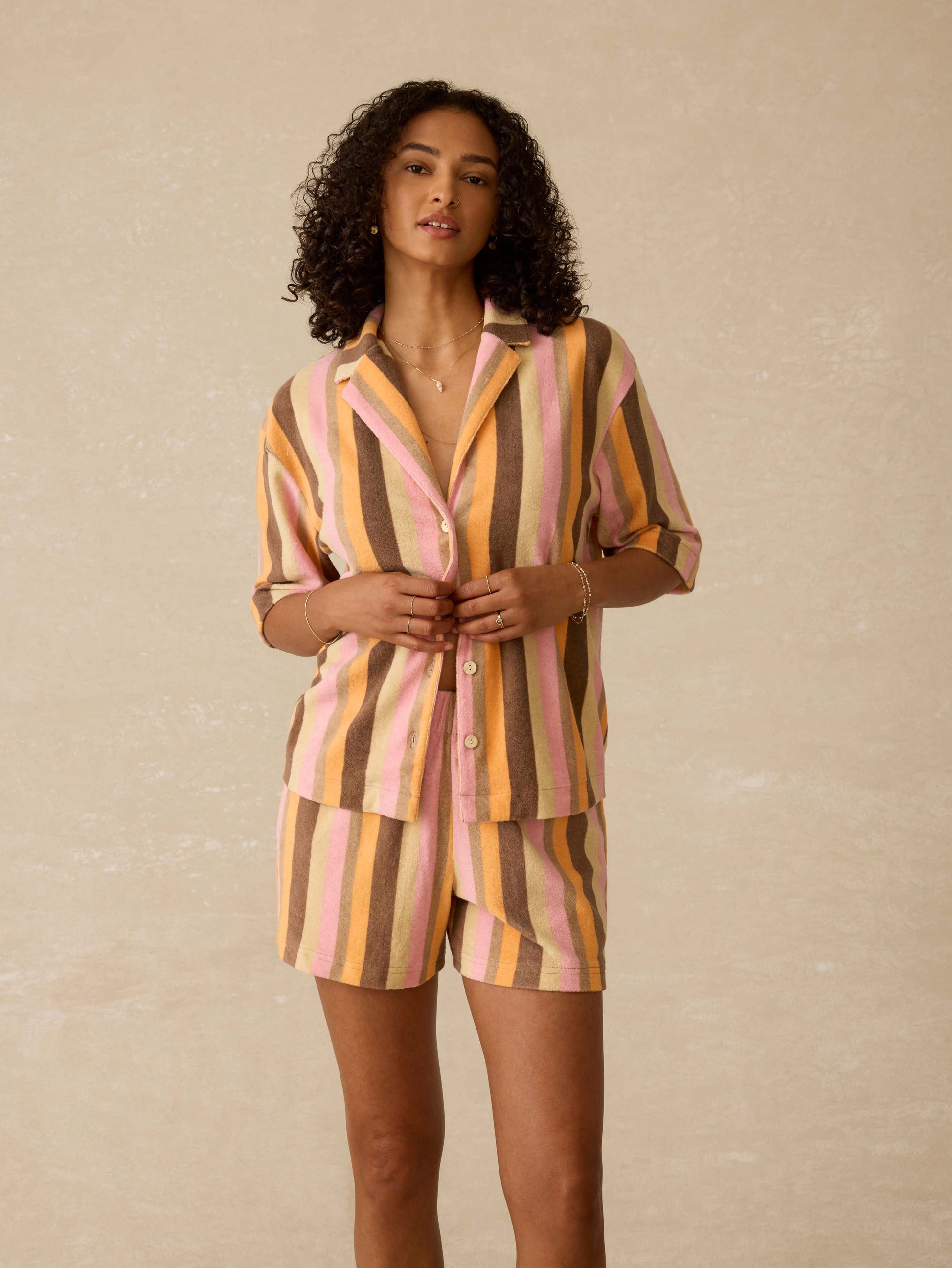 Cabana Towel Terry Camp Shirt - Sun Kissed Stripe