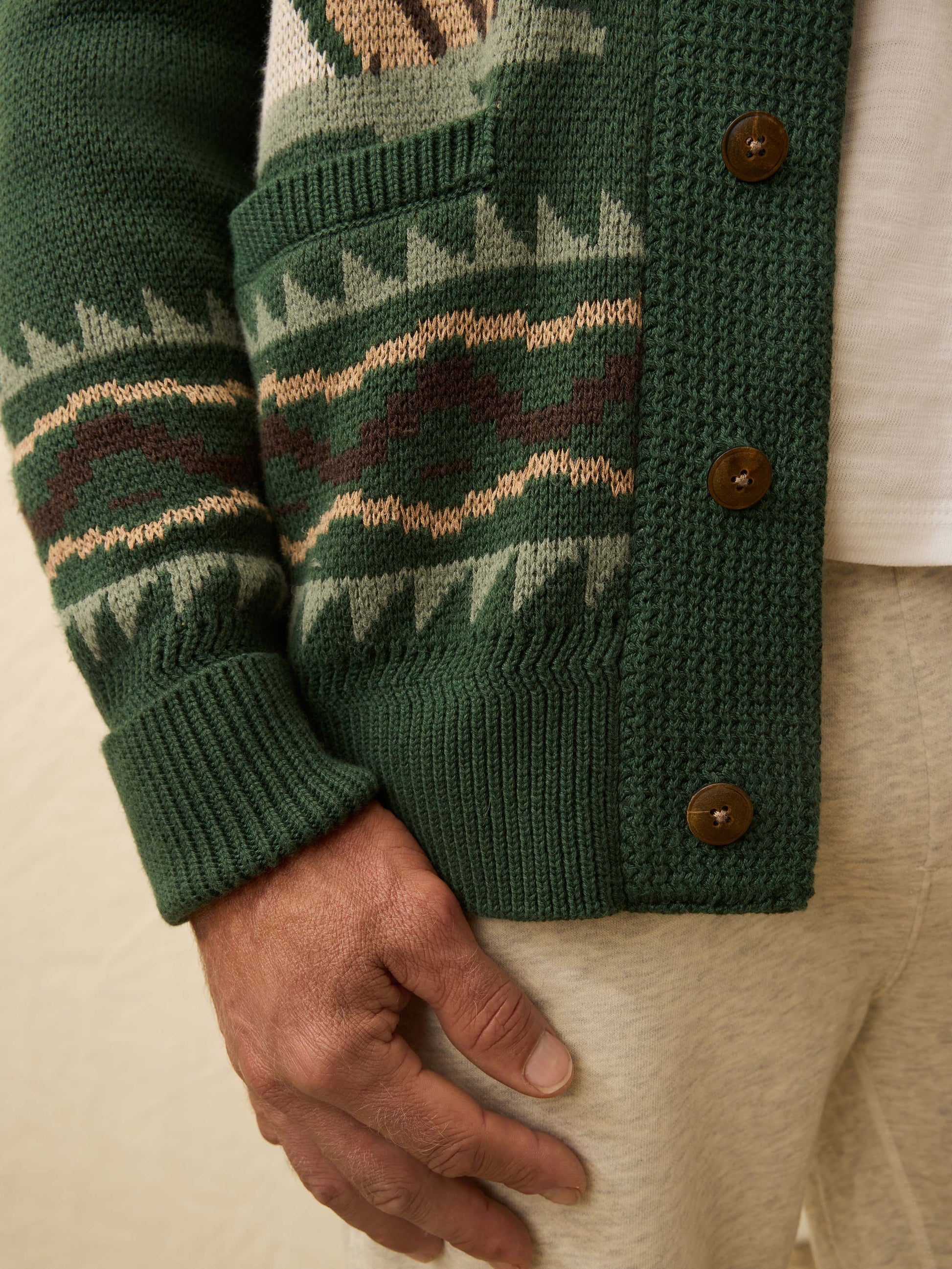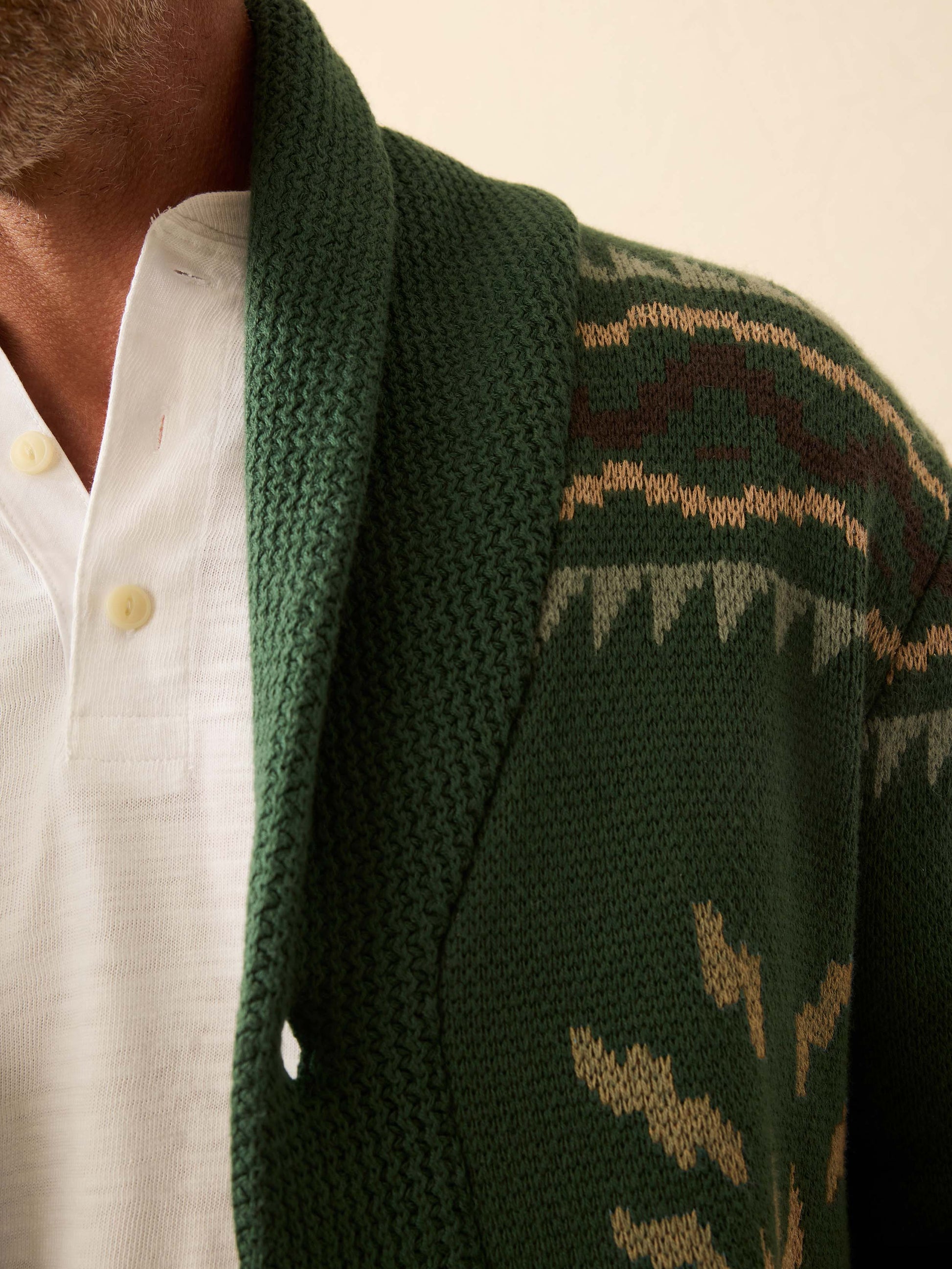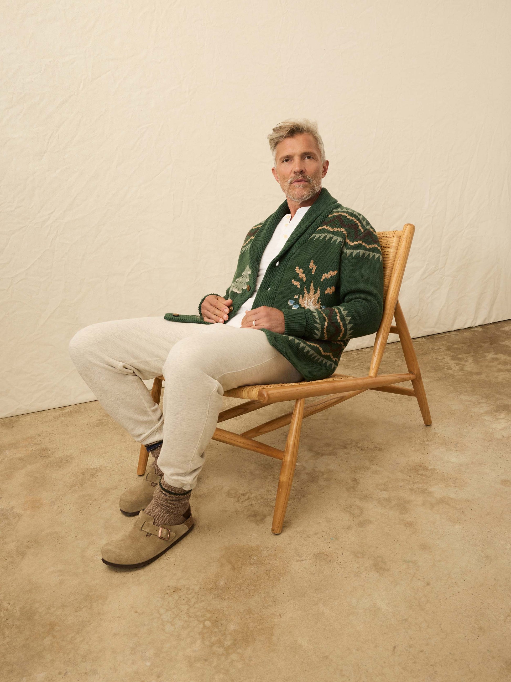 The kind of layer you reach for when the sun dips and the fire’s just starting to crackle. Knit from a premium cotton-cashmere blend, this cardigan is soft, substantial, and ready for long weekends tucked away in the woods.