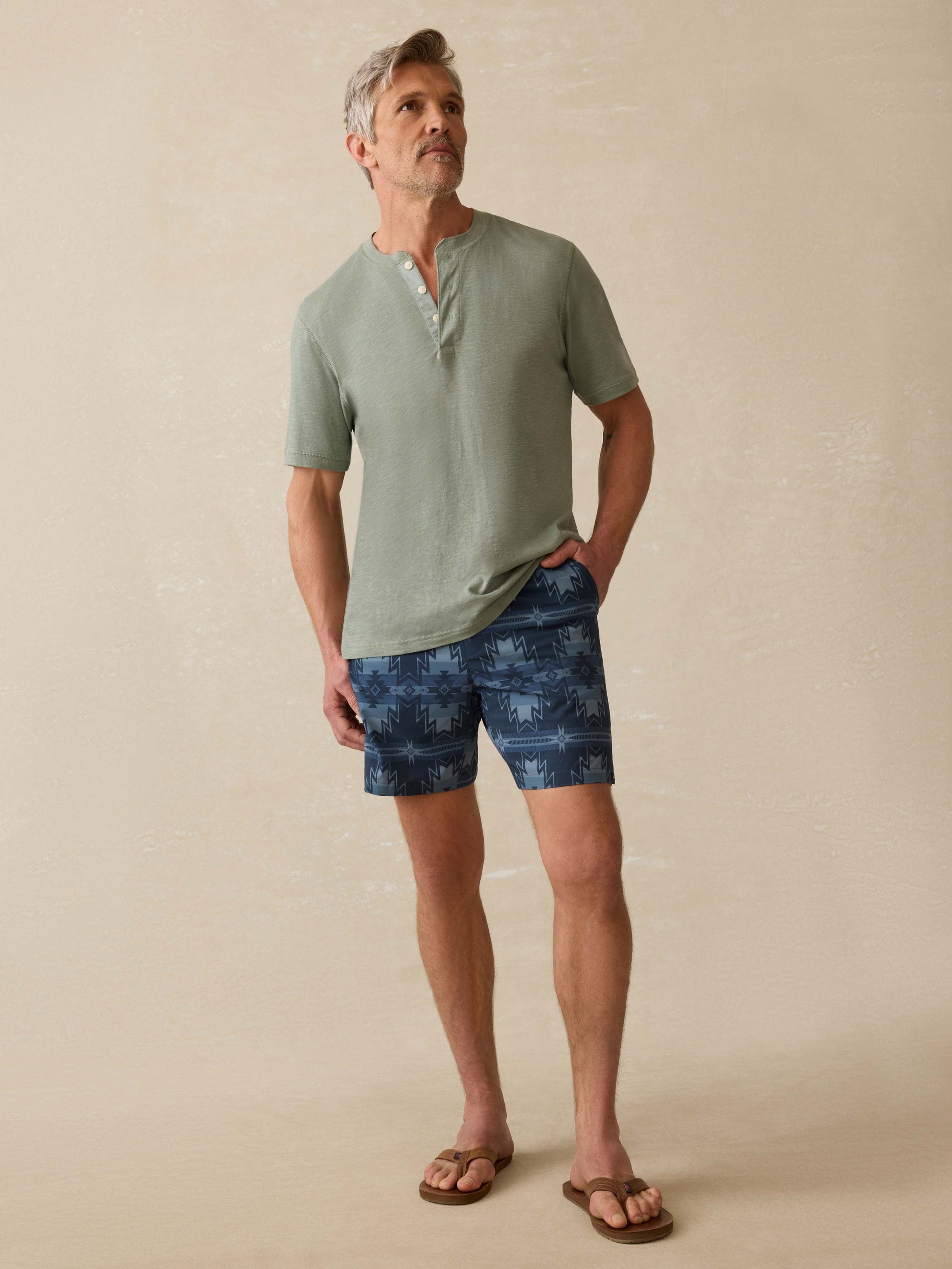 Native artist Doug Good Feather's (Standing Rock Lakota and Dakota Nation) nature-inspired motif embellishes our most technical short yet for those gym-to-beach days (and maybe even some lounging in between). Packed with utility, it's got a breathable, compression liner for support during your most active moments and zippered accessory pockets to keep valuables close. The lightweight and quick-drying fabric has the perfect amount of stretch and offers UPF50+ so you can stay out and get after it. If you're looking for a true activewear short with an iconic Faherty beach vibe, this is it.