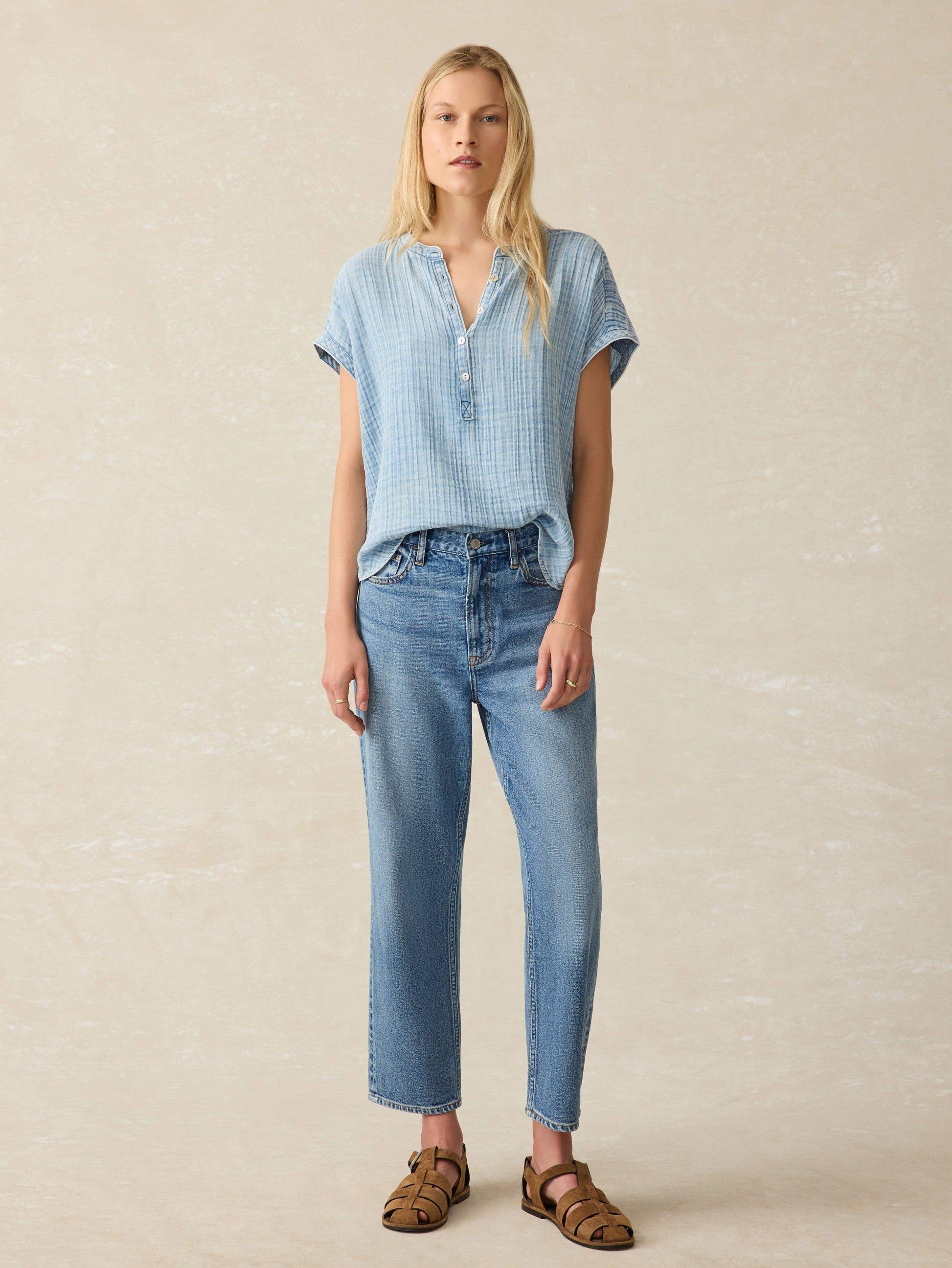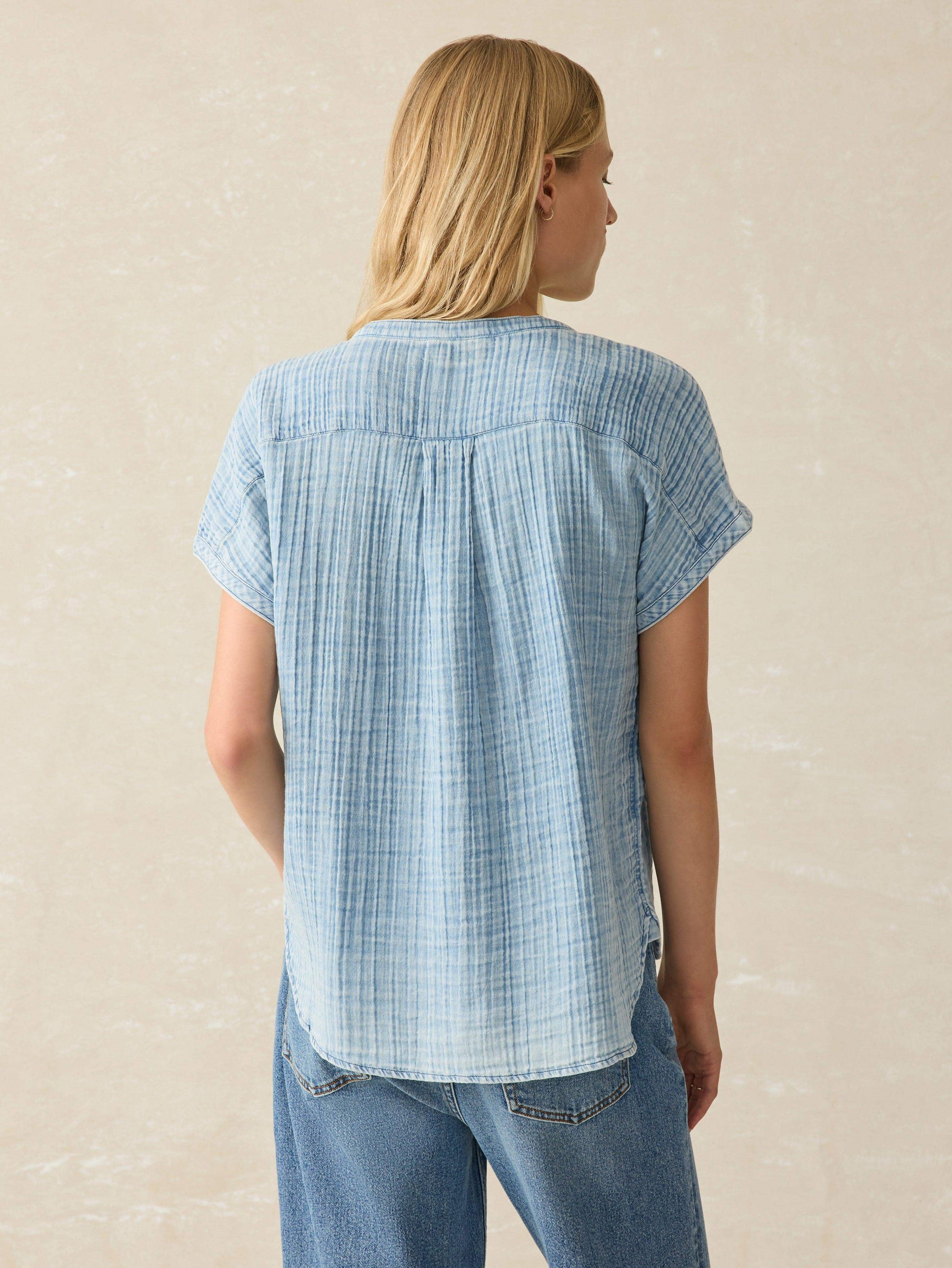 Dream Cotton Gauze Desmond Top - Light Indigo Wash