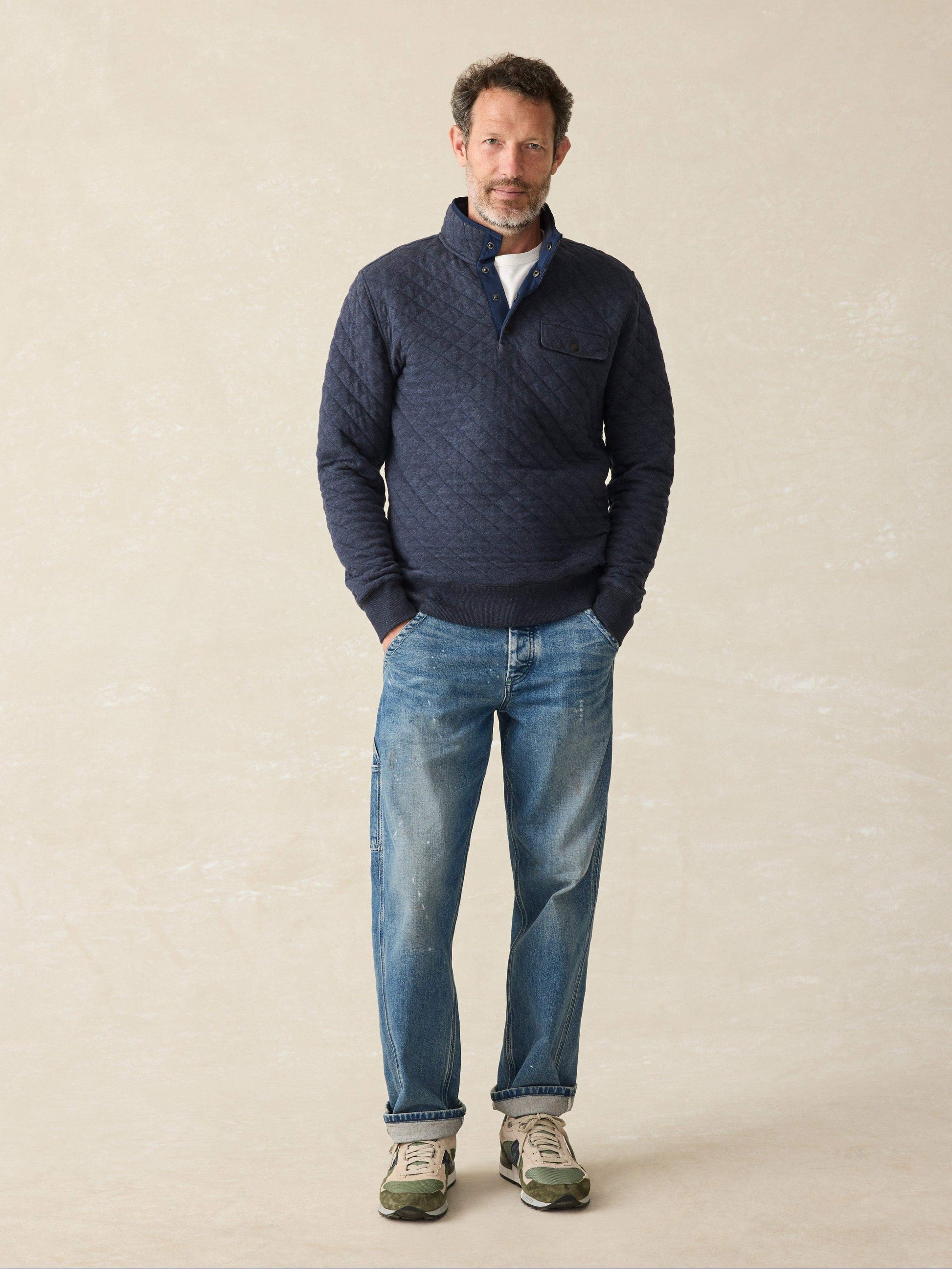Quilted with three layers for structure, texture and warmth, this midweight fleece is more polished than a sweatshirt and endlessly versatile. We wear it over shirts or under jackets on colder days.