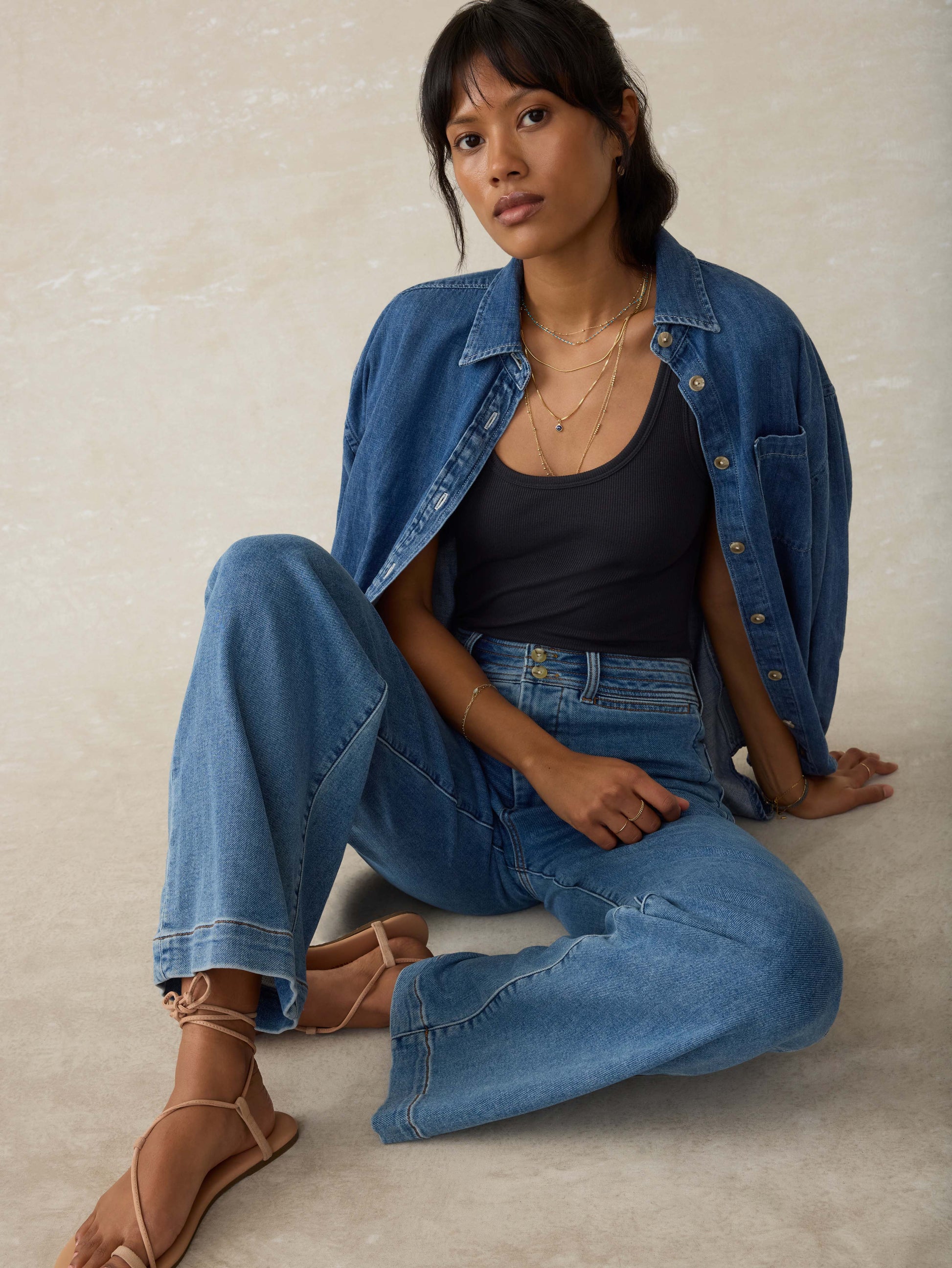 - Detail: Sleeveless ribbed tank.
