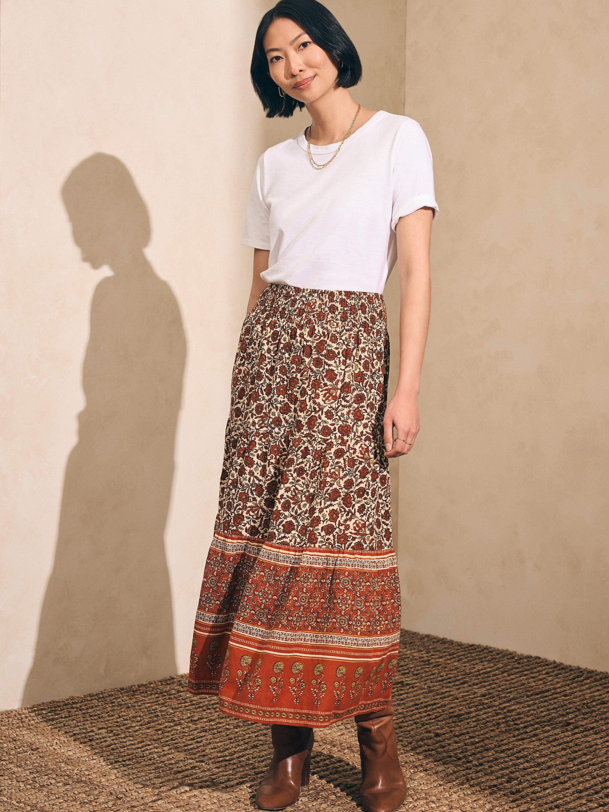 Lightweight with a relaxed, go-with-the-flow attitude, this maxi skirt with a smocked waistband and two floaty tiers can be dressed up or down with ease. We love it styled with a delicate cami in warmer months and cozied up in the fall with a cardigan and suede boots.