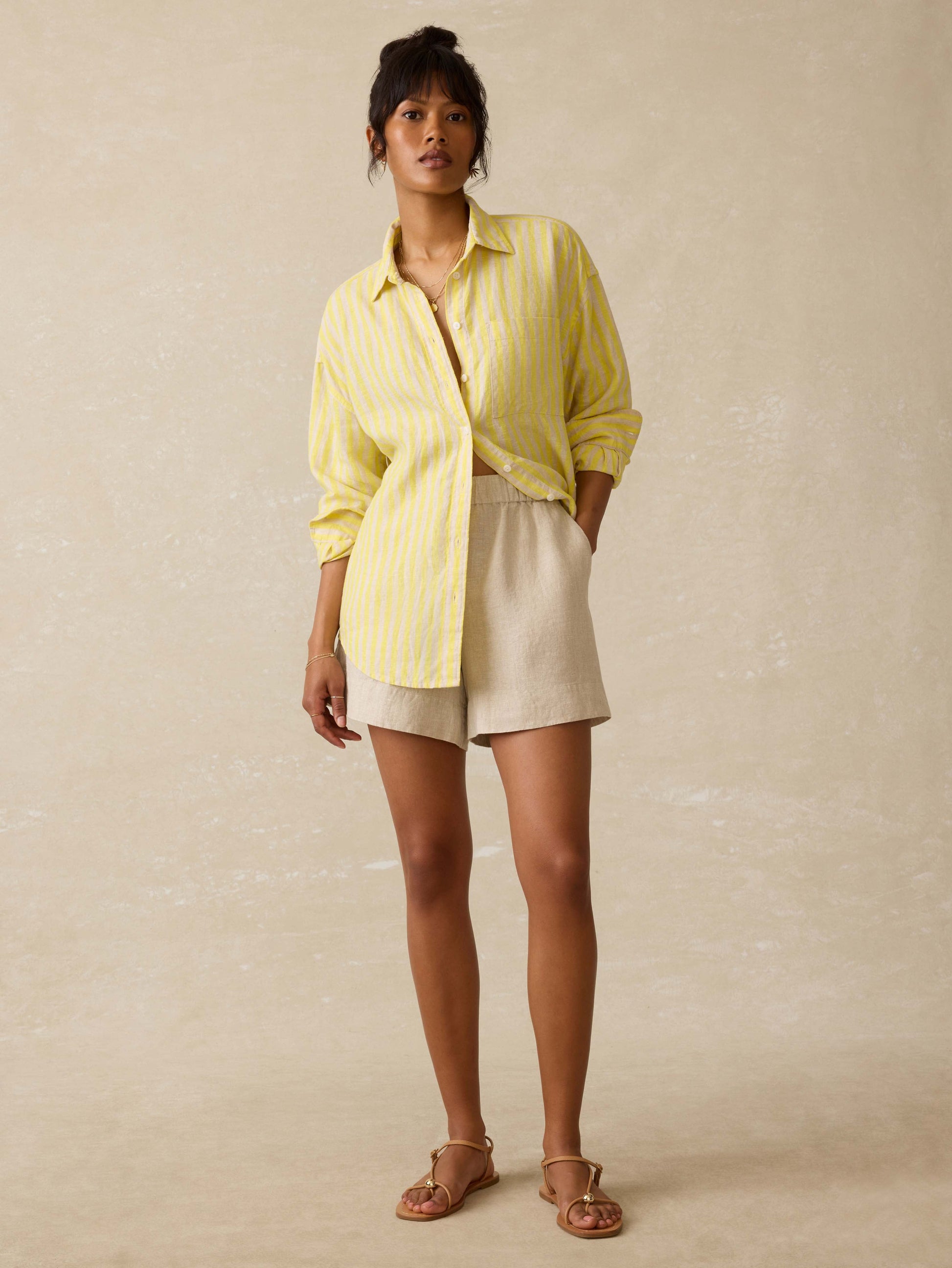 Laguna Linen Relaxed Shirt - Golden Kiwi Lucy Stripe