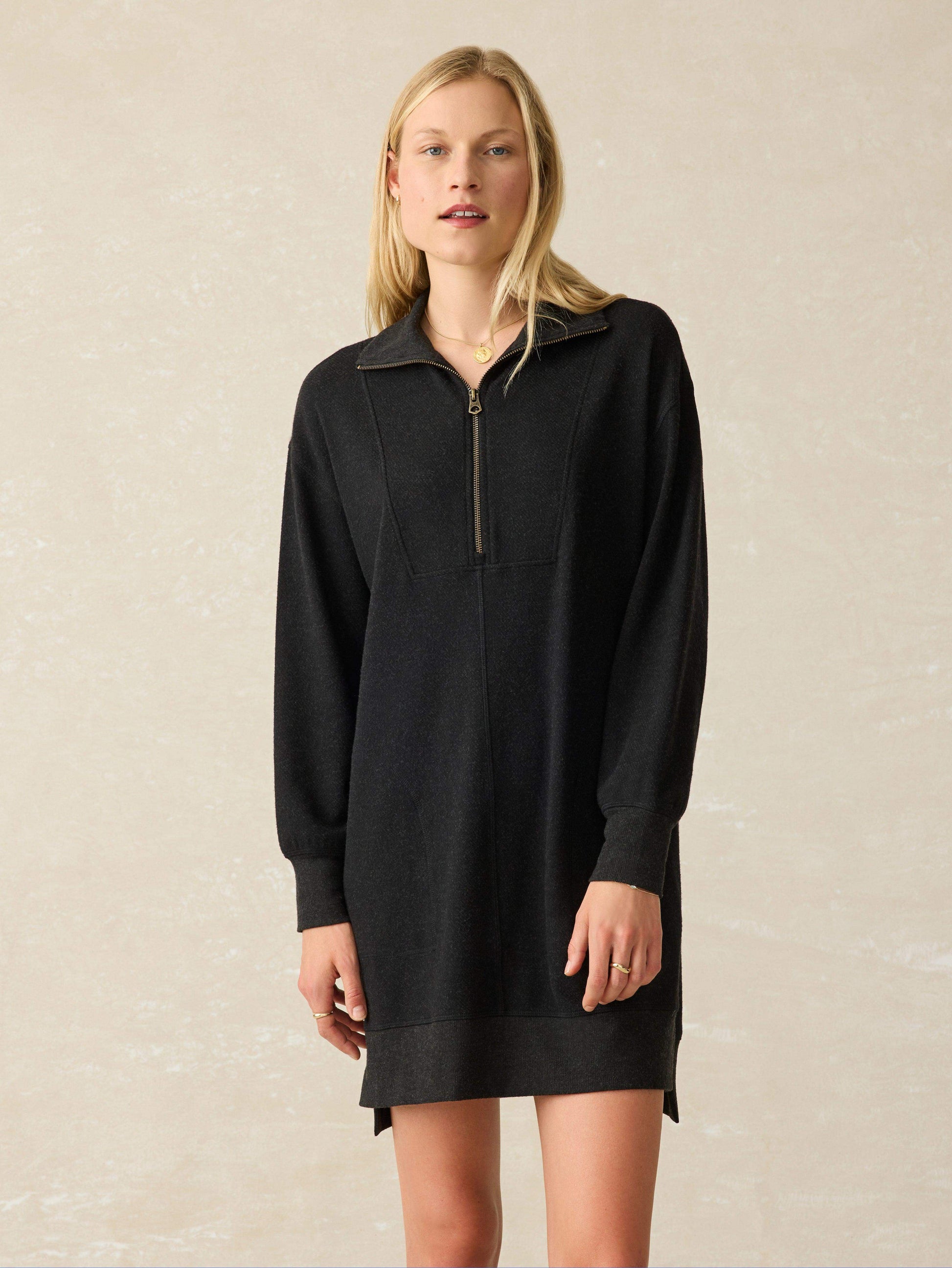Referencing the sporty but put-together style of the quarter zip pullover, this softer-than-soft dress is the ideal option for casual days. Featuring a relaxed, yet flattering silhouette that skims the body and classic sweatshirt rib detailing, it's the epitome of cozy but stylish fall vibes.