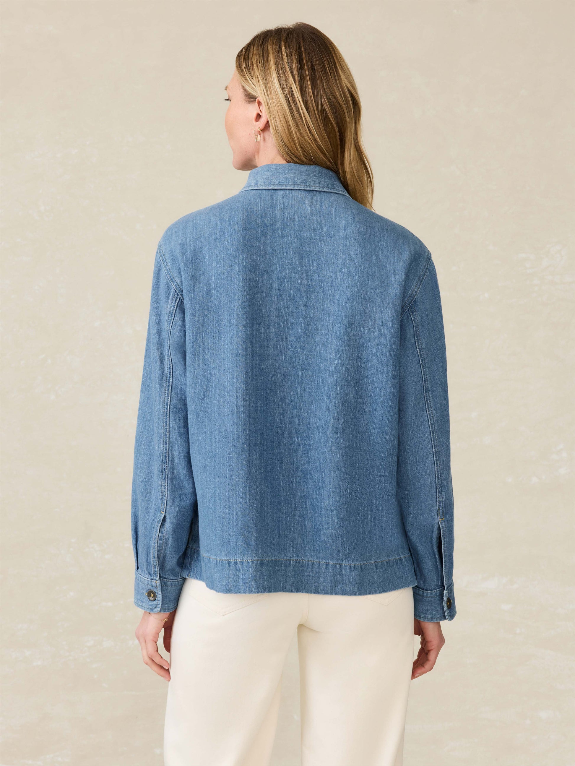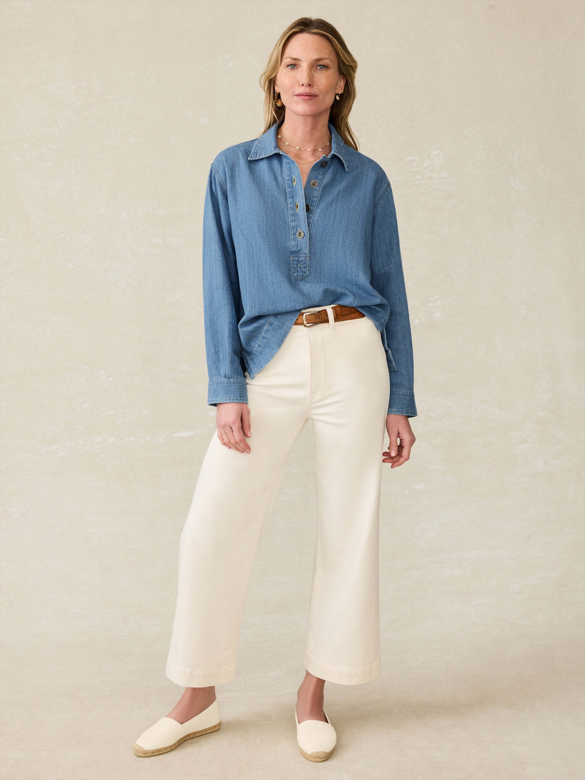Linen Denim Oceanview Blouse - Coastal Cloud Wash