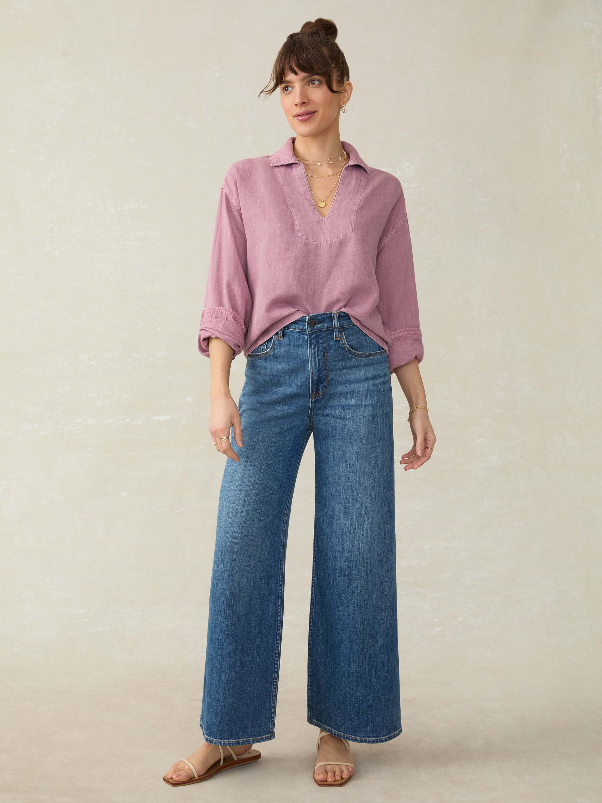 Linen Denim Sail Away Blouse - Weathered Orchid