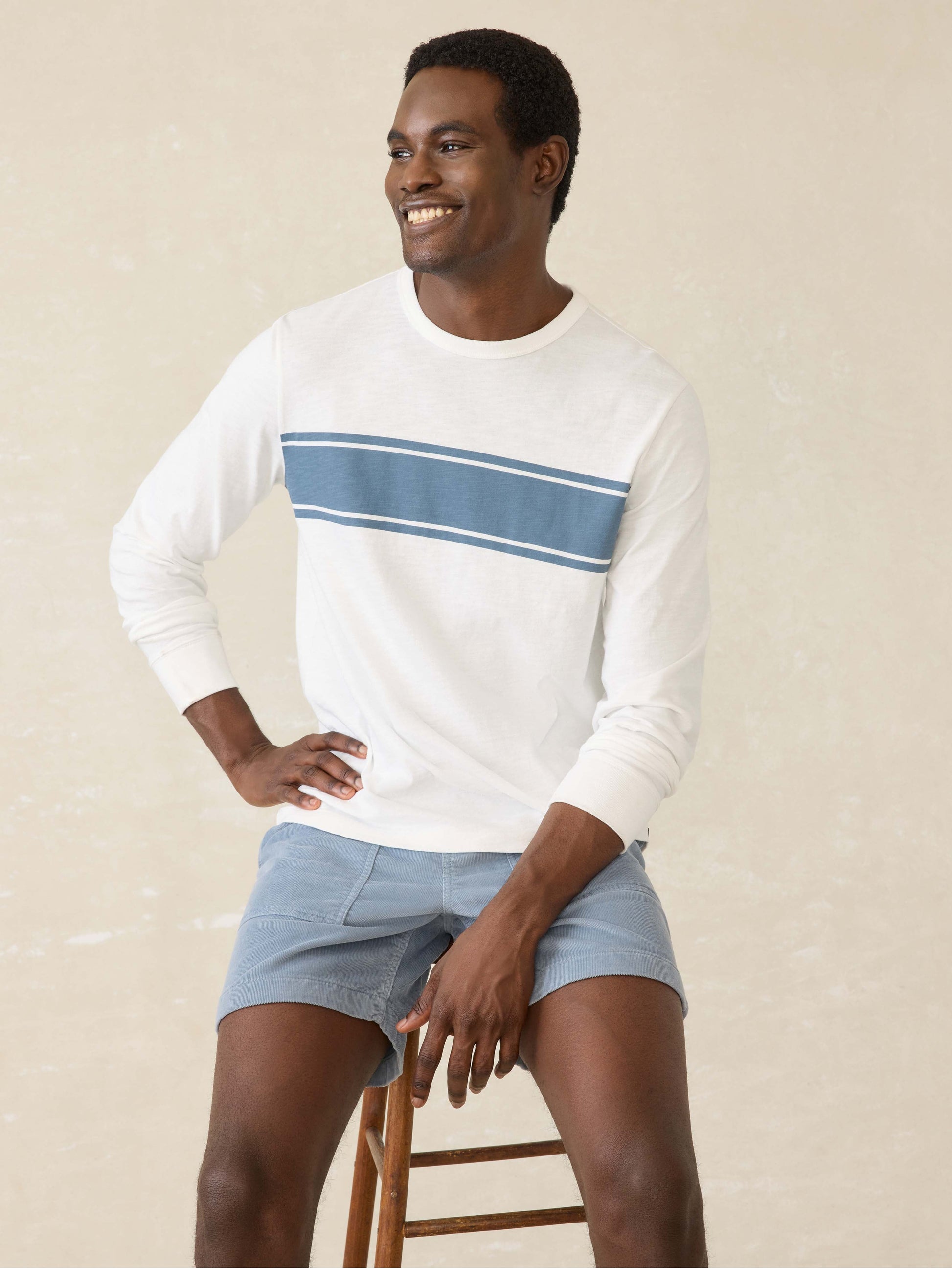 Long-Sleeve Sunwashed Tee - White Surf Stripe