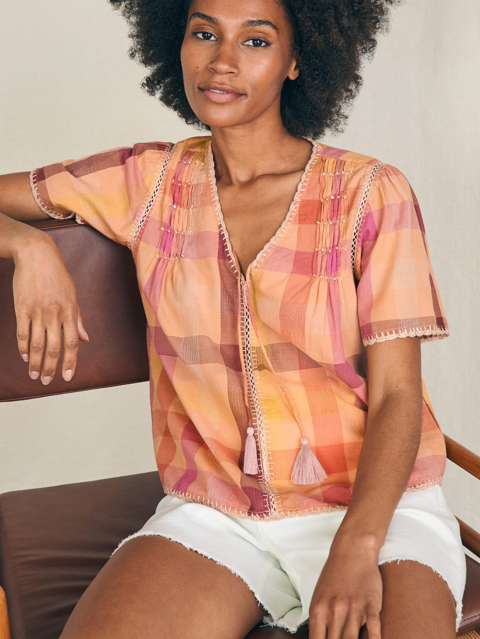 Margate Blouse - Sunset Desert Plaid