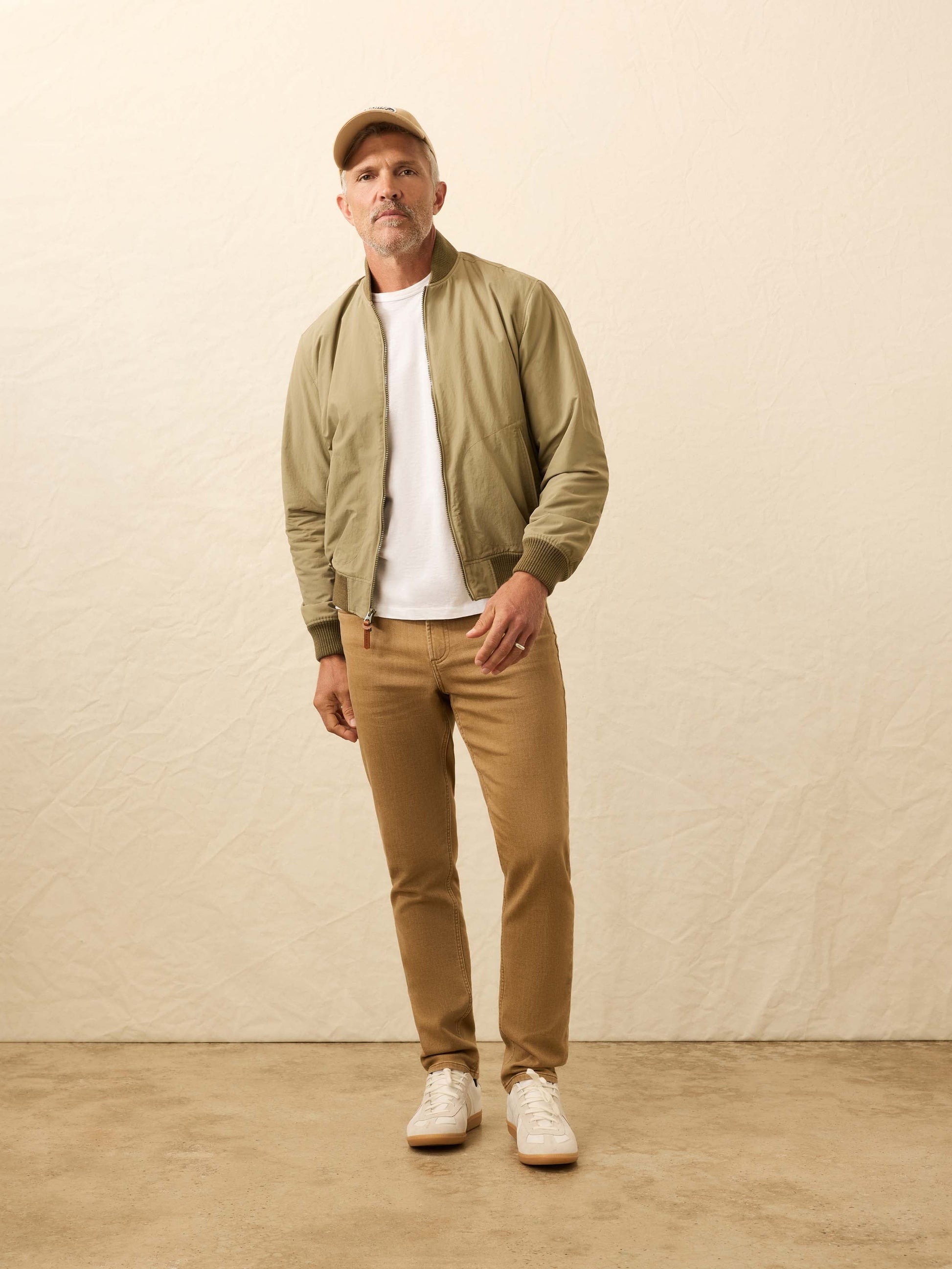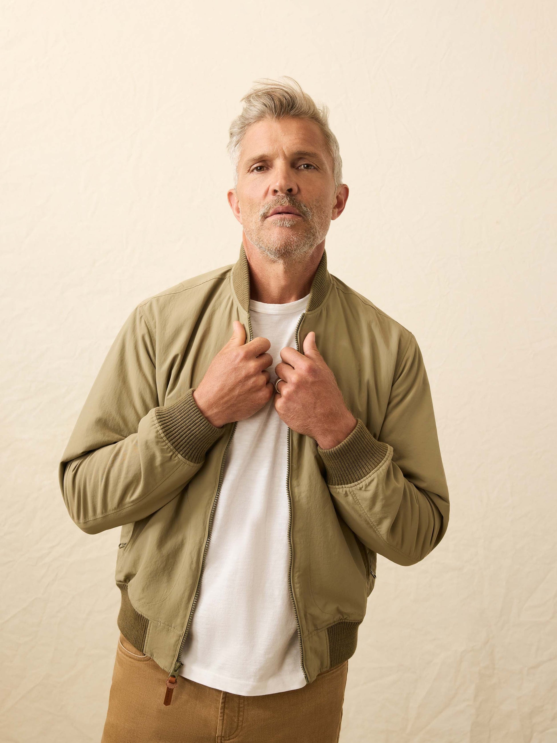 This nylon bomber brings sleek style with the right amount of edge—finished with clean knit ribbing at the cuffs, hem, and collar for a sharp fit. The metal zipper with a leather pull feels substantial, while enamel eyelets add a subtle pop of detail. Lightweight and versatile, it’s the kind of jacket that instantly pulls a look together.