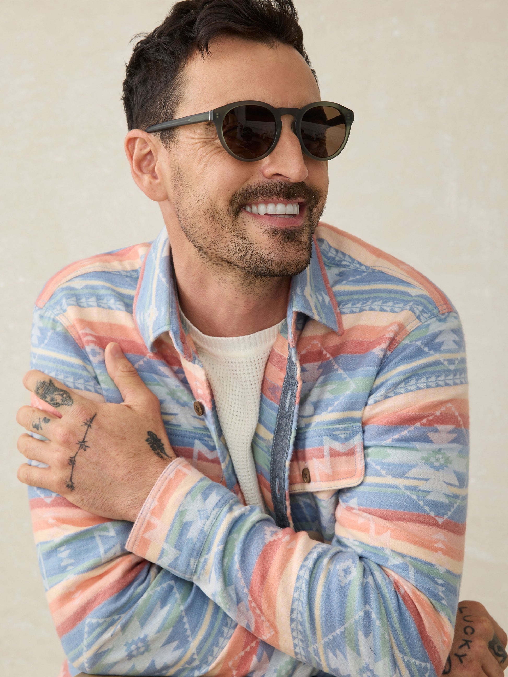 For the first time ever, we've developed our own sunglasses that combine performance with signature Faherty laid back vibes. This preppy round shape keeps it clean and effortless.