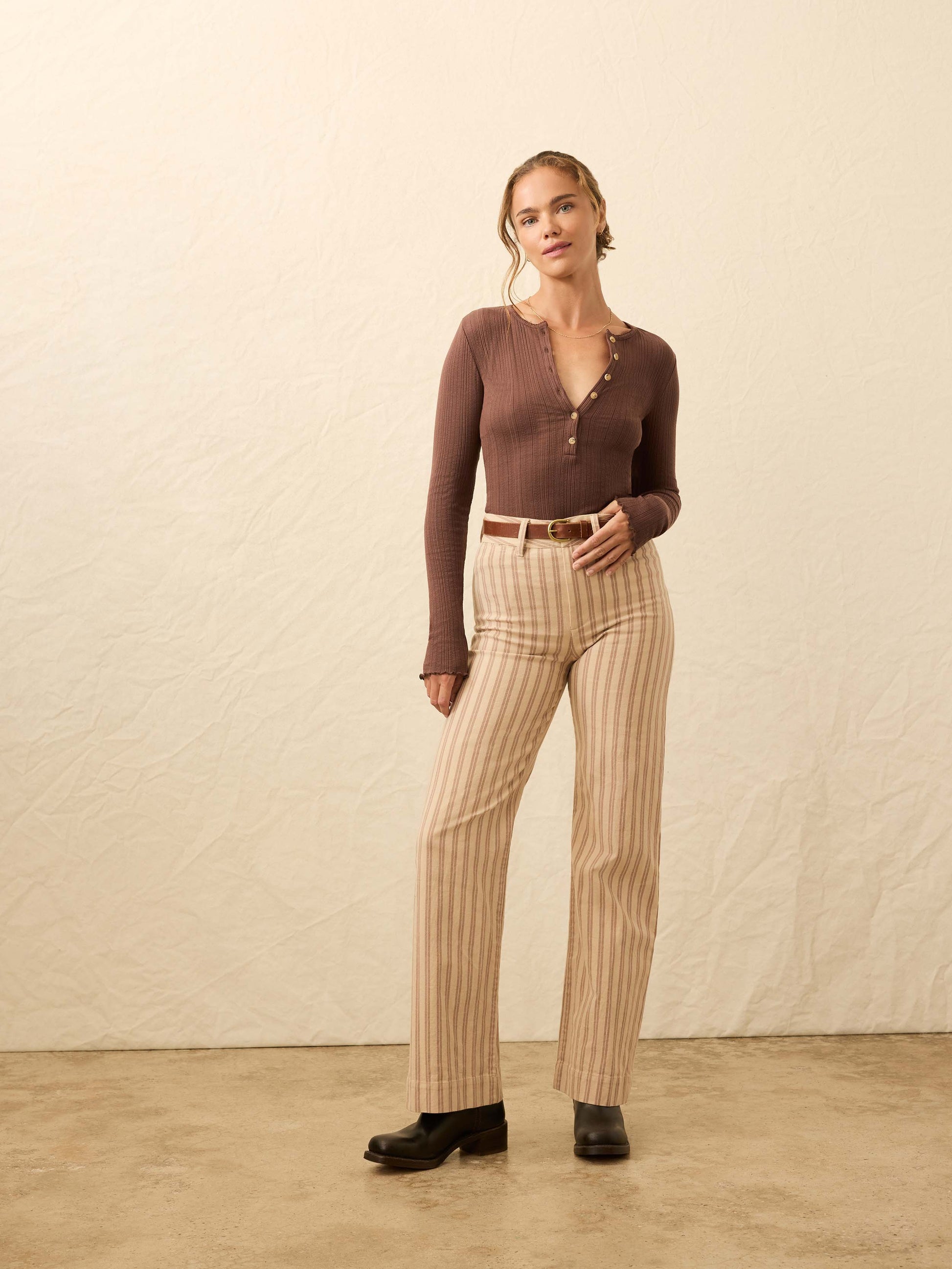 Paradise Pointelle Henley - Chocolate Brown