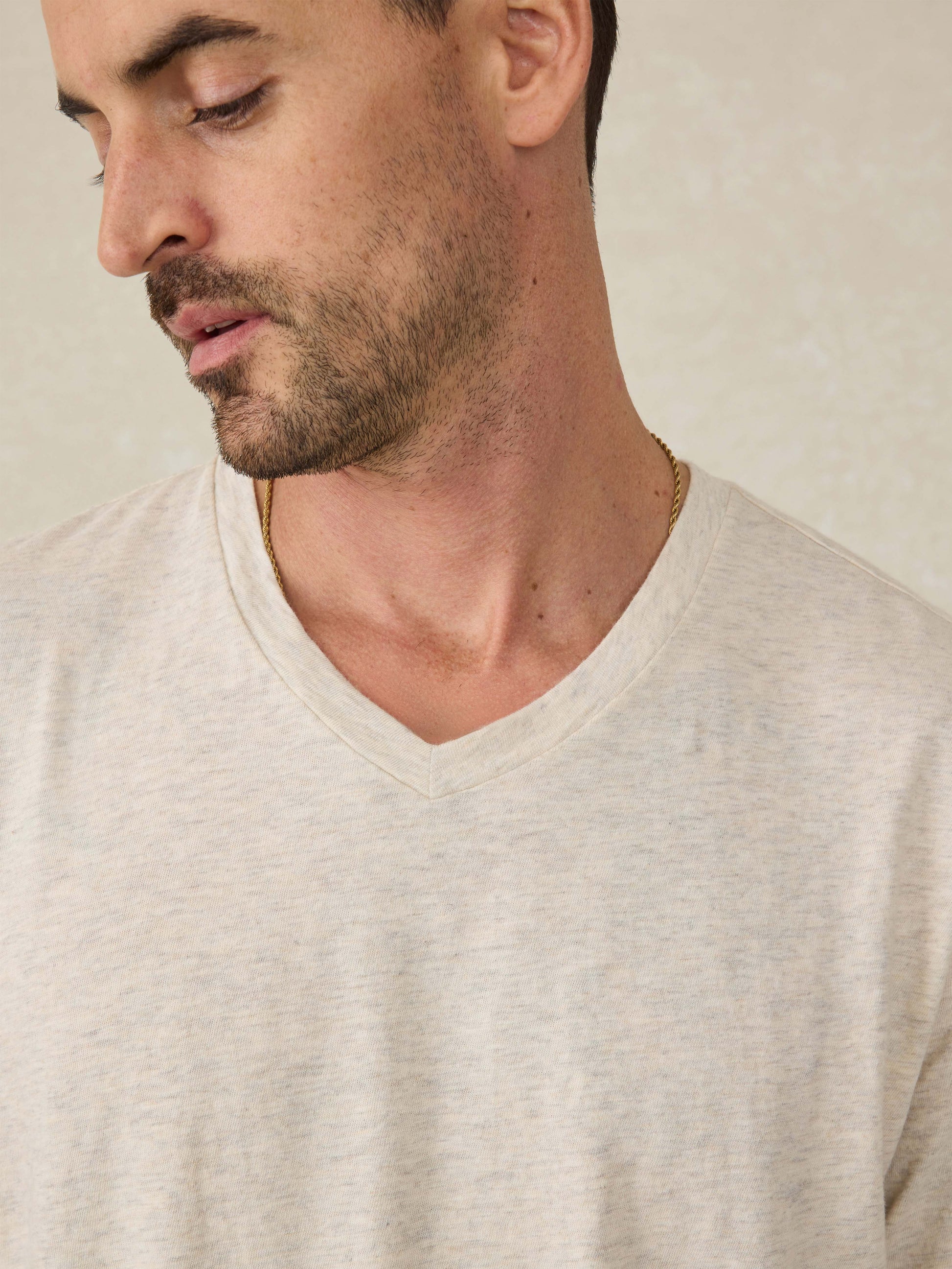 Short-Sleeve Sunwashed Regenerative Cotton V-Neck Tee - Island Dune Heather