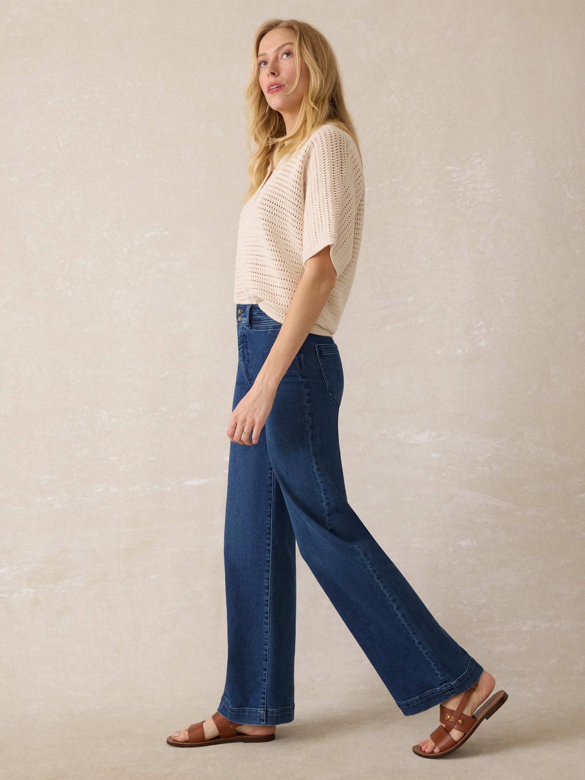 Our new Harbor silhouette features a high rise and wide leg that reads polished and playful – just in time for spring. Crafted from our signature Stretch Terry (looks like denim, feels like sweats), we designed it with hidden front seam pockets to add to the hugged-in feel that's endlessly comfortable and flattering. Decorative stitching and double buttons on the waistband complete the coastal-inspired look.