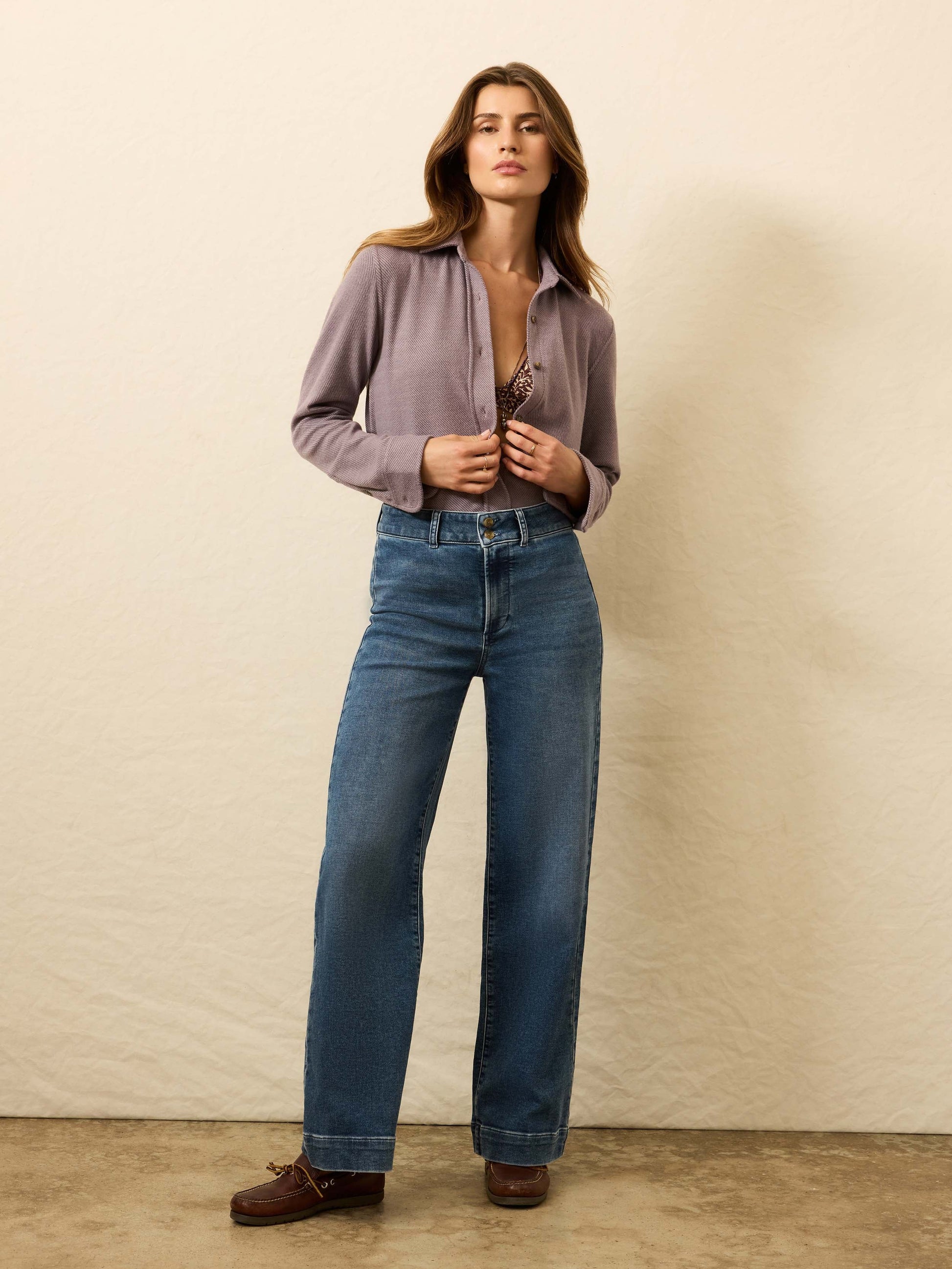 These mid-rise sailor trousers take a timeless silhouette and make it all-day wearable. The wide leg and classic button details bring the nautical-inspired charm, while our yarn-dyed stretch terry keeps things soft, flexible, and incredibly comfortable. Designed to pair effortlessly with fall’s best tops—think cozy sweaters, henleys, and easy layers—they’re the kind of pants that make looking pulled together feel second nature.