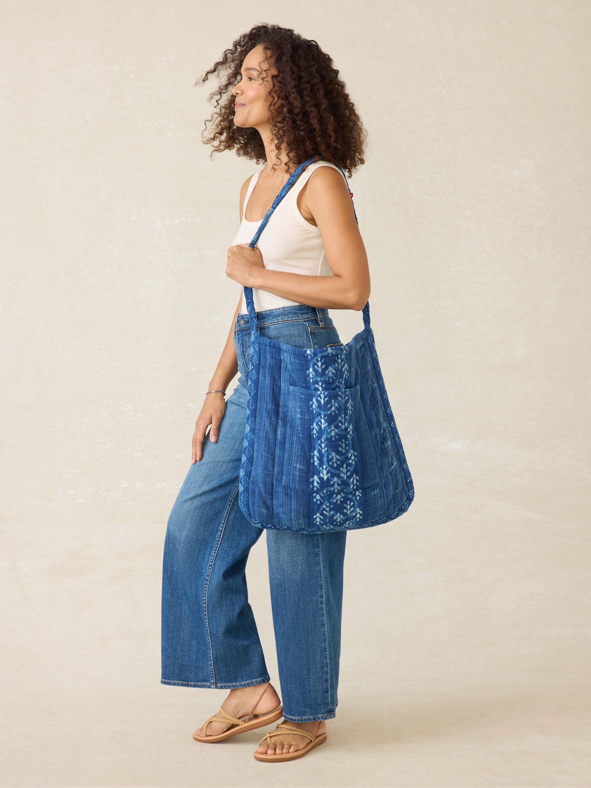 Tried-and-true, our quilted tote brings that well-loved comfort, made from soft, indigo-dyed cotton with a hand-printed design that deepens with every adventure. Roomy enough for farmers' market hauls, weekend escapes, or just the essentials for chasing the sun, it’s got that effortless, take-it-everywhere feel. Stitched with care, built for the long haul—this one’s made to carry stories.