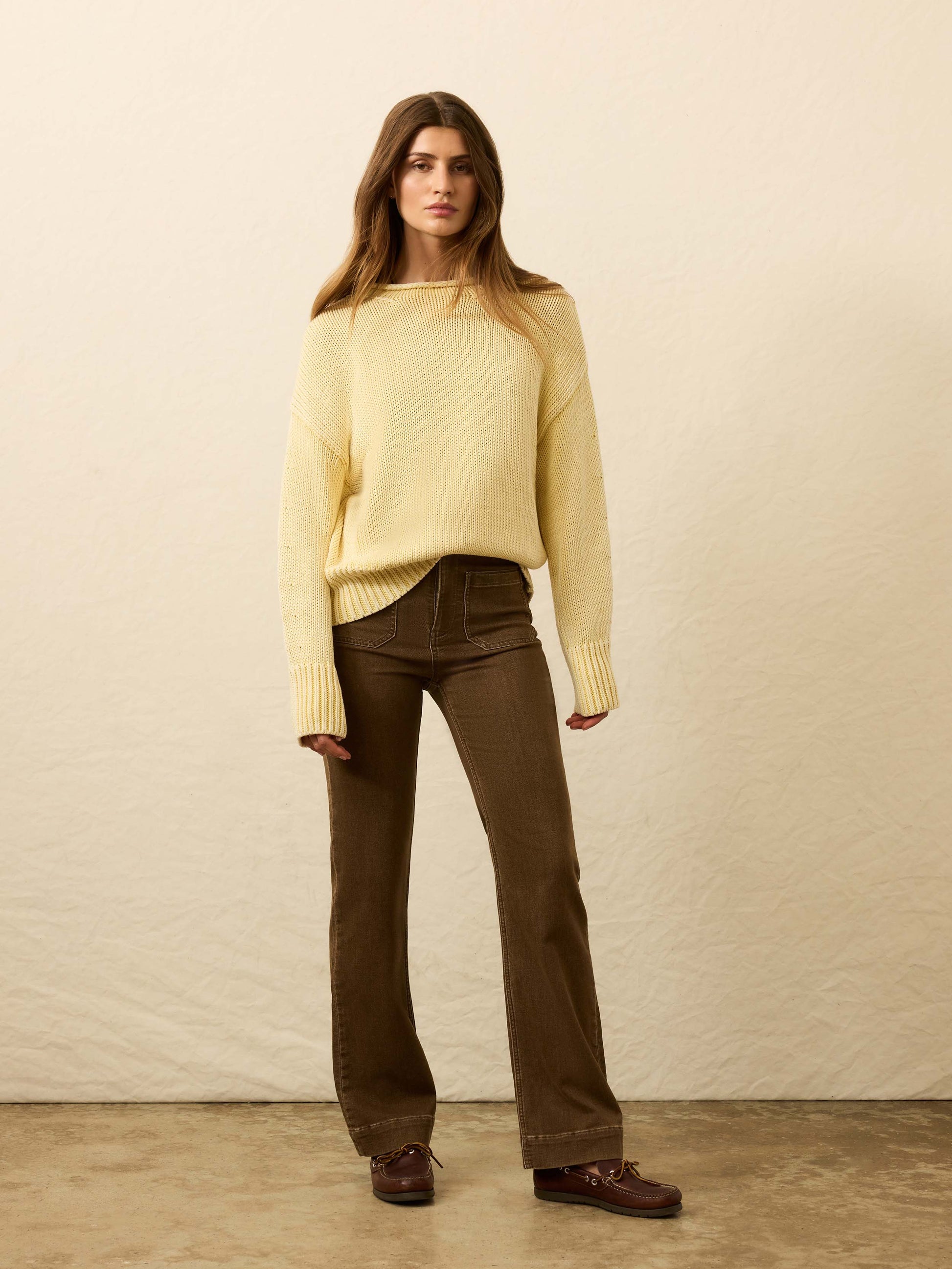 Sunwashed Cotton Roll Neck Sweater - Lemon Sorbet
