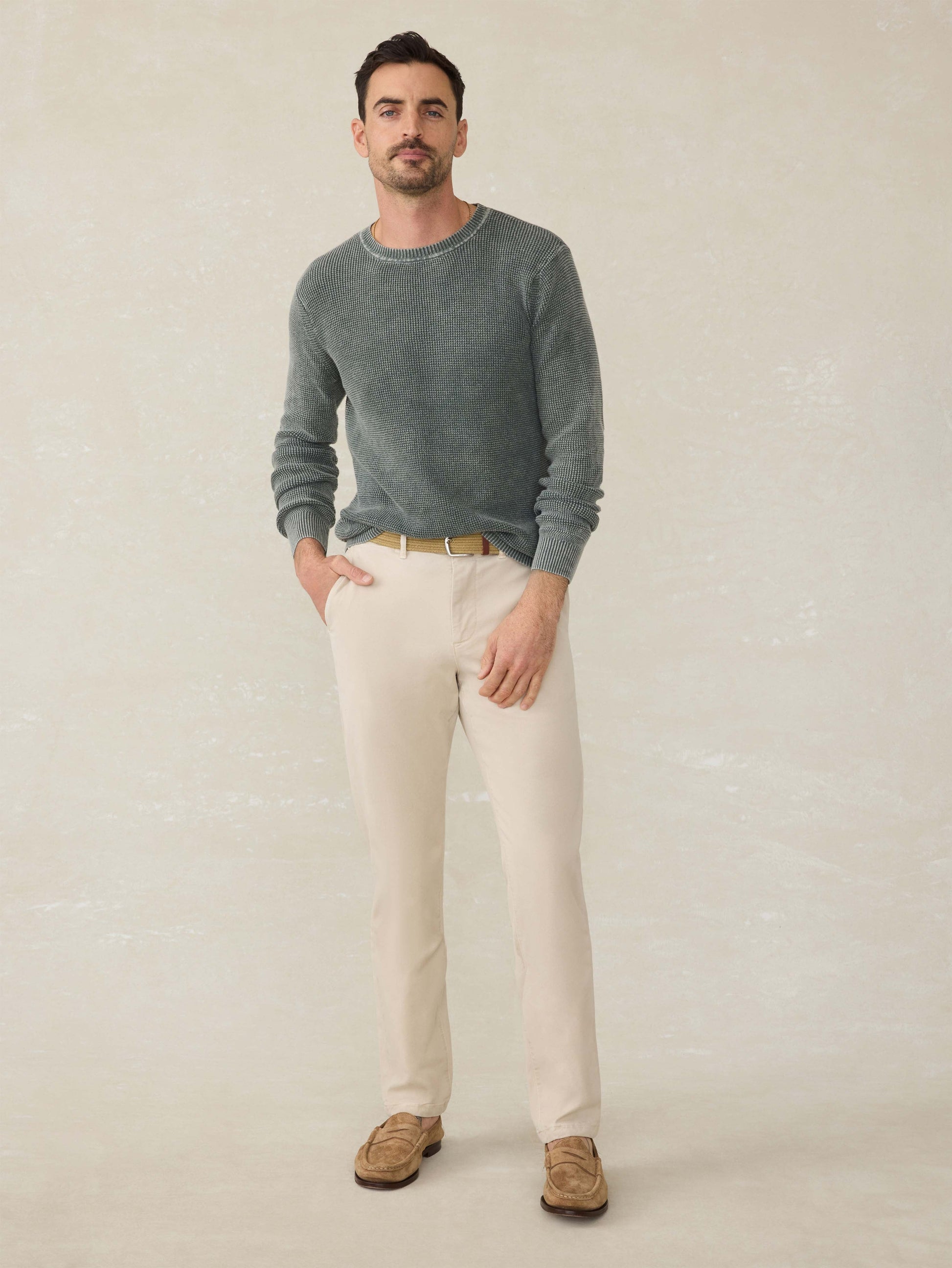 Designed as an easy to wear, transitional sweater., this will be your go-to year-round crew. Our cotton yarn is super soft but not overly warm and knit in an airy, waffle stitch giving the sweater dimension and texture. It's then garment-dyed and washed for a lived in, vintage look and feel that's casually cool for any occasion.