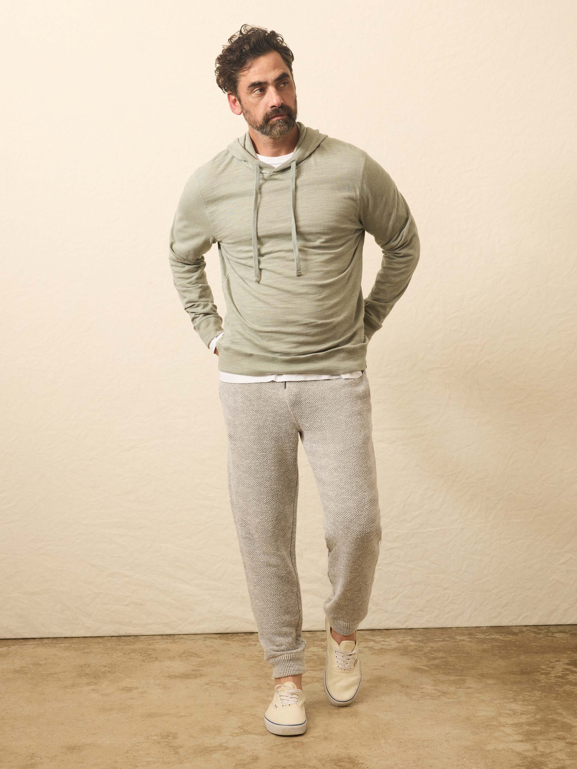 Our slub knit fabric is crafted from high-quality cotton and combed for exceptional texture and softness. The perfect layer, this hoodie does all the work of a sweatshirt — featuring a classic relaxed fit, knit ribbing at the collar, cuffs, and hem, and cinchable hood — without the added weight. Get one, and feel what we're talking about.