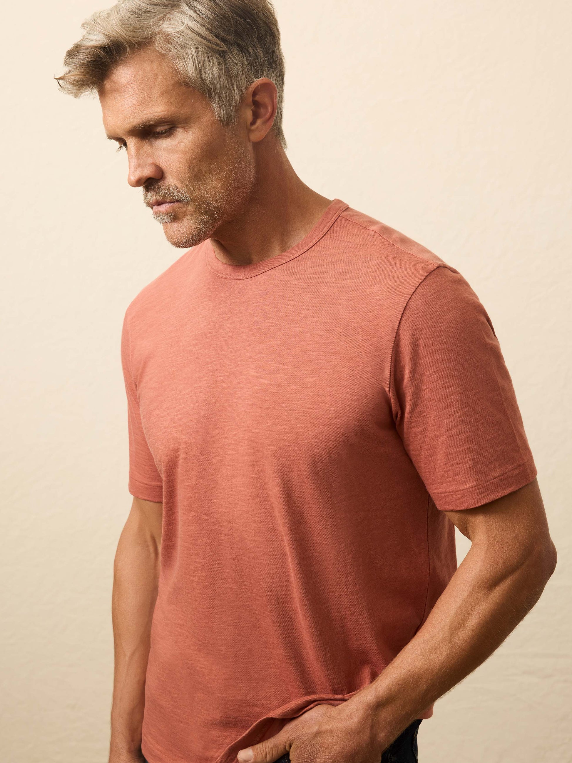 The only tee shirt you need. Our Sunwashed Tees are crafted in 100% Regenerative Organic Cotton and finished with a lower impact Ozone Wash, for a perfectly lived-in look and feel. Cut with a relaxed silhouette, this is the timeless wear-with-everything tee. Some call these basics – we definitely don't.