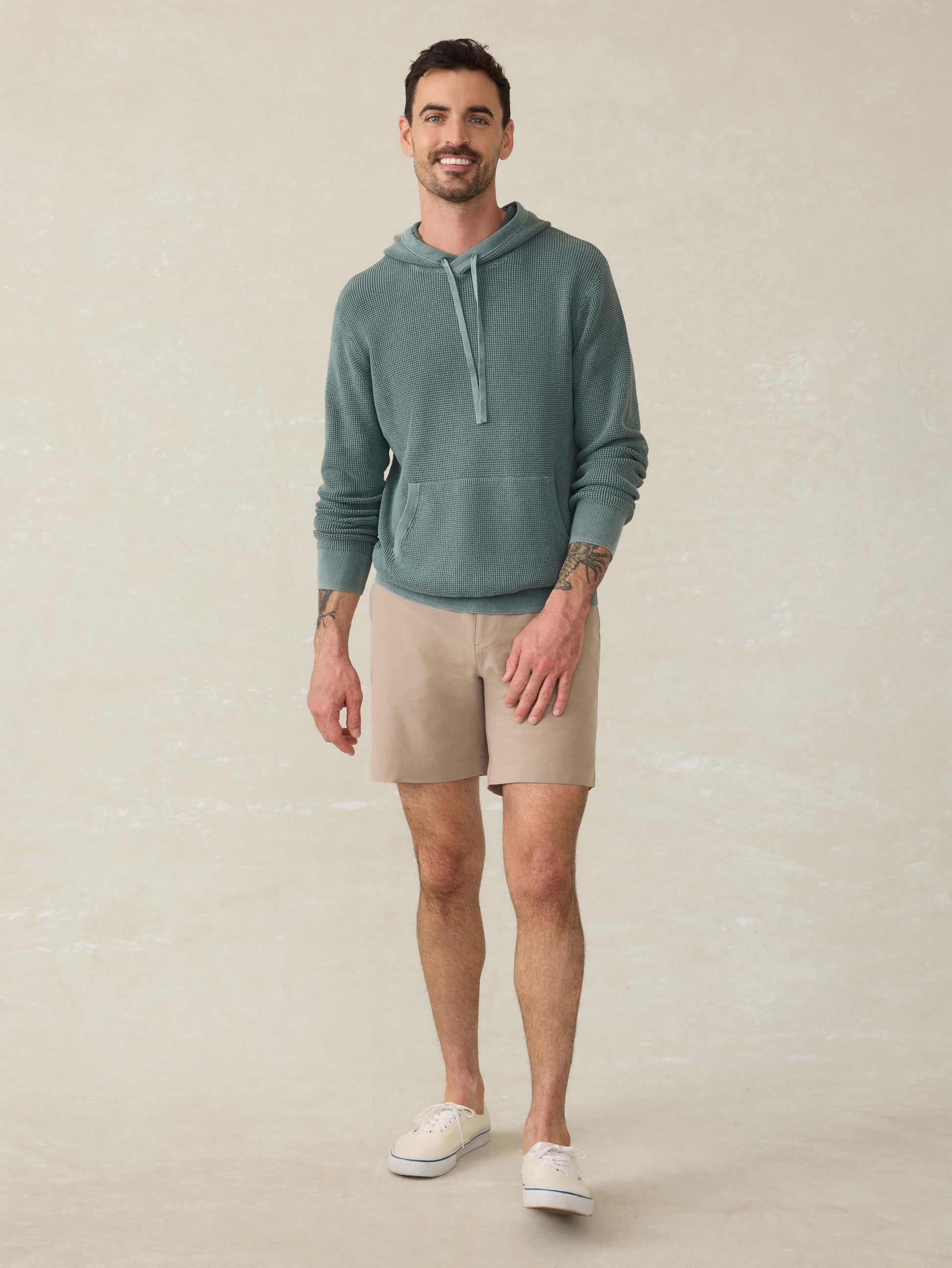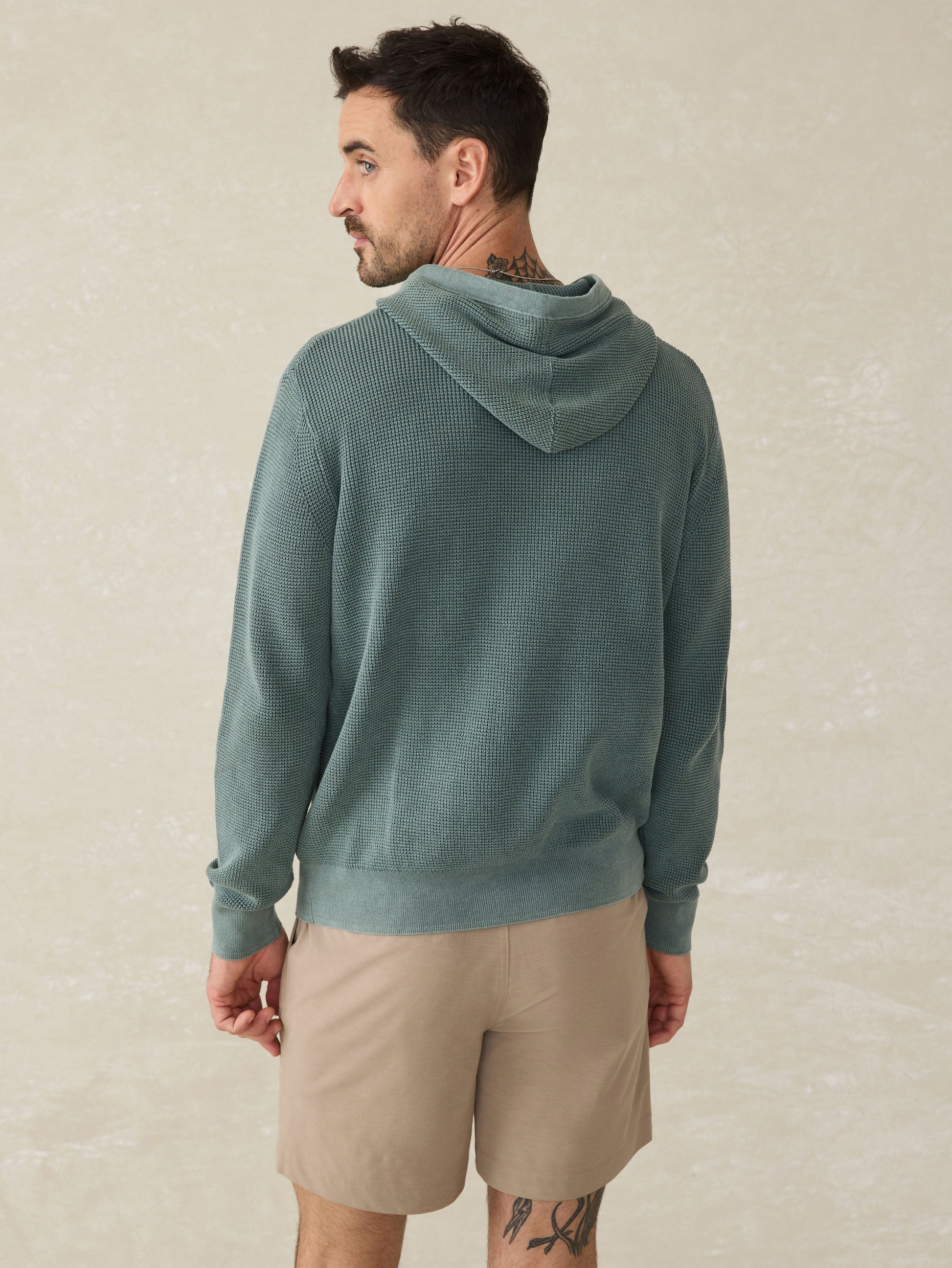 Designed as an easy-to-wear, transitional layer, this hoodie will be in your rotation all year round. Our cotton yarn is super soft but not overly warm and knit in an airy, waffle stitch giving the sweater dimension and texture. It's then garment-dyed and washed for a lived in, look and feel.