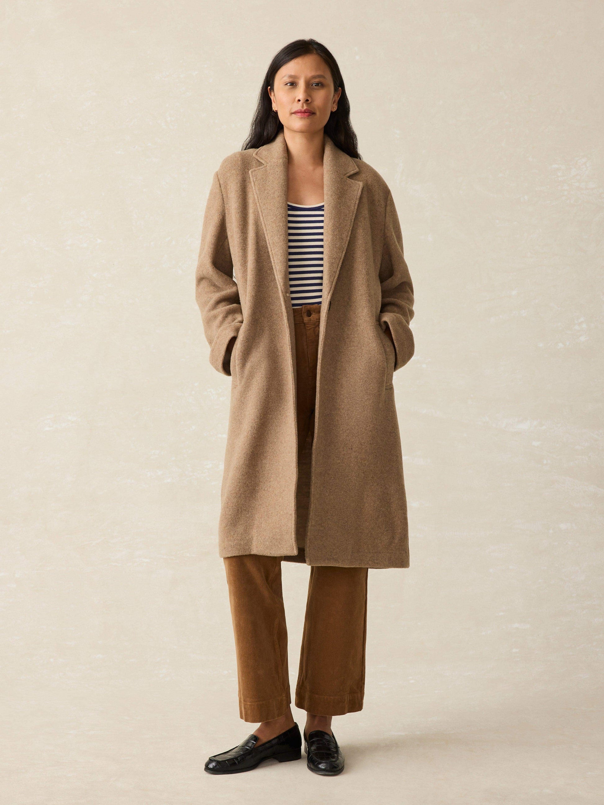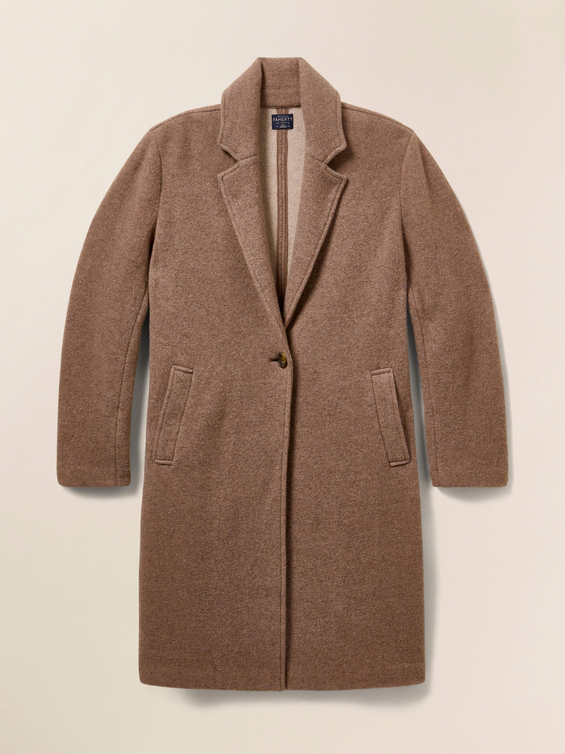 This elegant coat exudes timeless style done the Faherty way. Our double face wool blend fabric has a smooth finish that compliments the coat's clean lines. With an open front and relaxed shape, it's easy to layer over your favorite sweaters of the season.