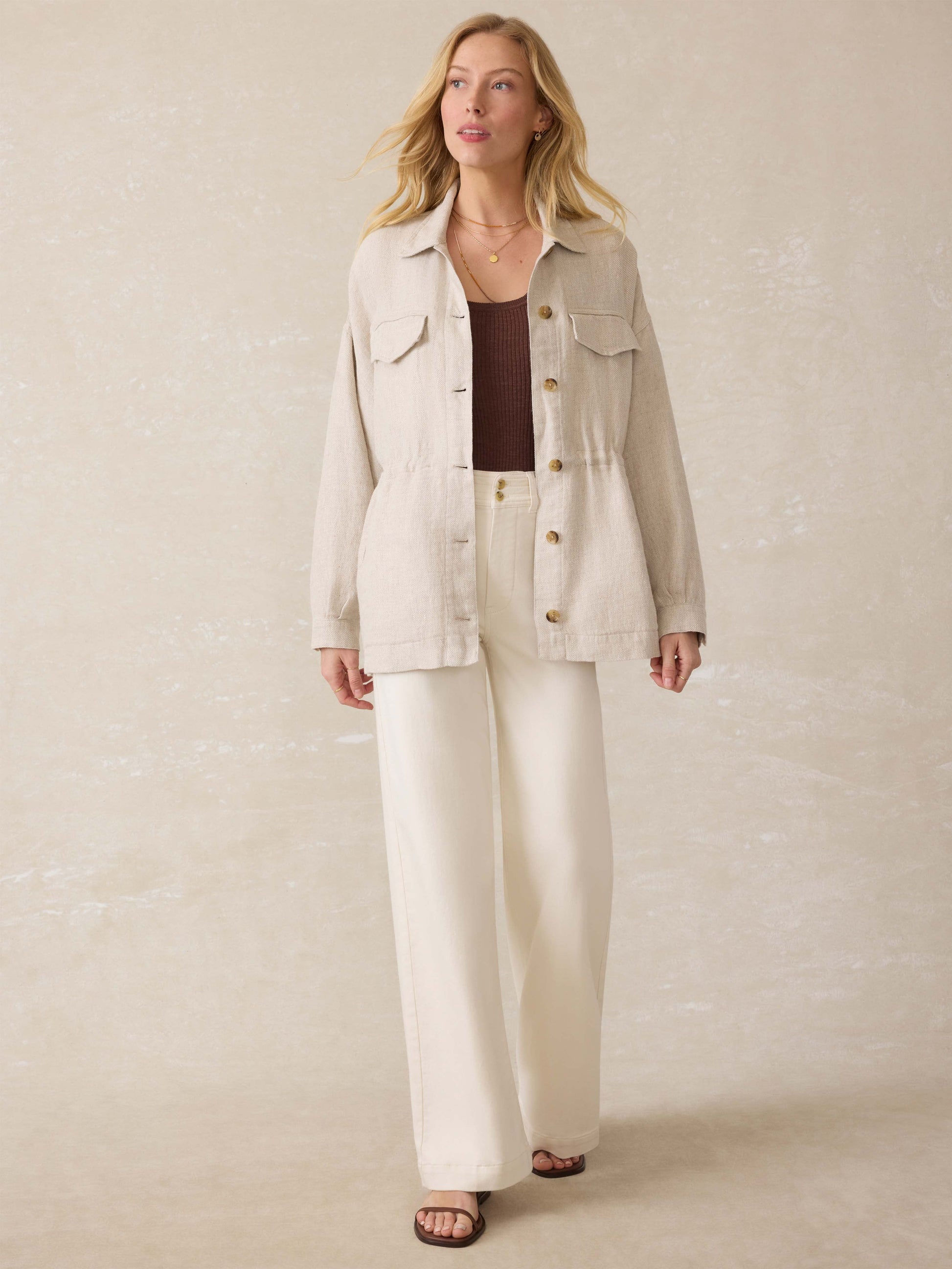 Twill Linen Utility Jacket - Flax
